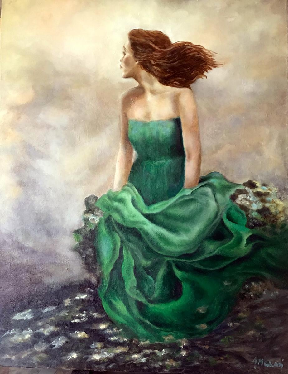 #FIGURA FEMMINILE IN VERDE DONNA CHE GUARDA LONTANO DONNA CON ABITO VERDE