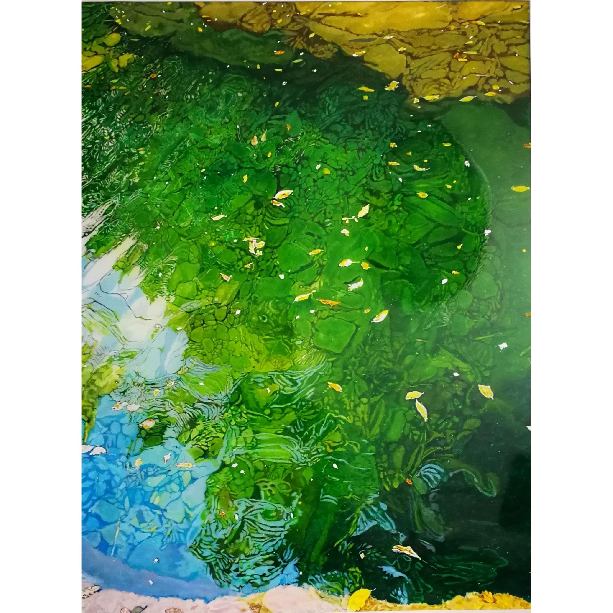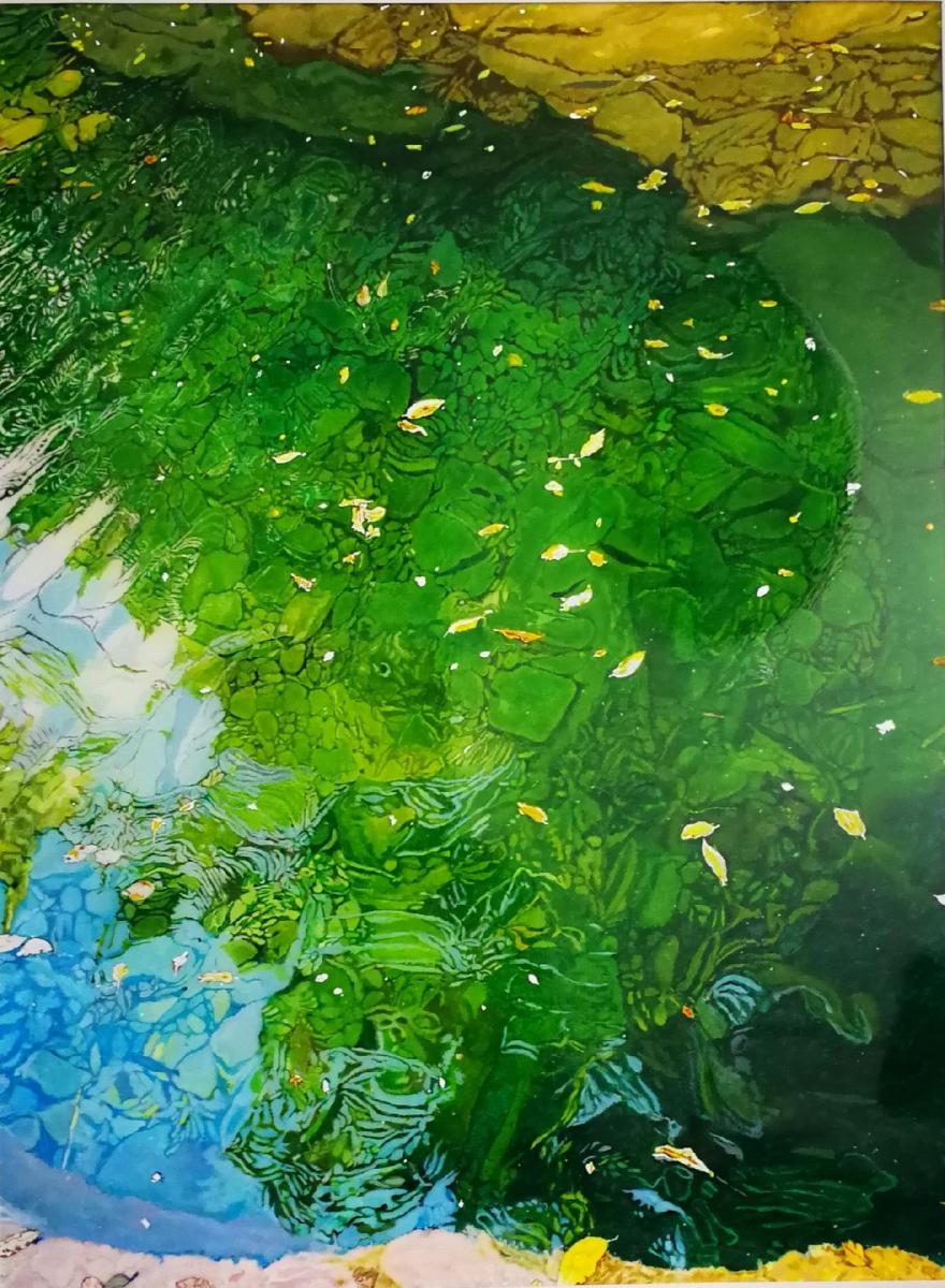 Specchiod’acqua cascata - Greto fiume Rabbi. Gesso,pittura acrilica e resina su pannello multistrato