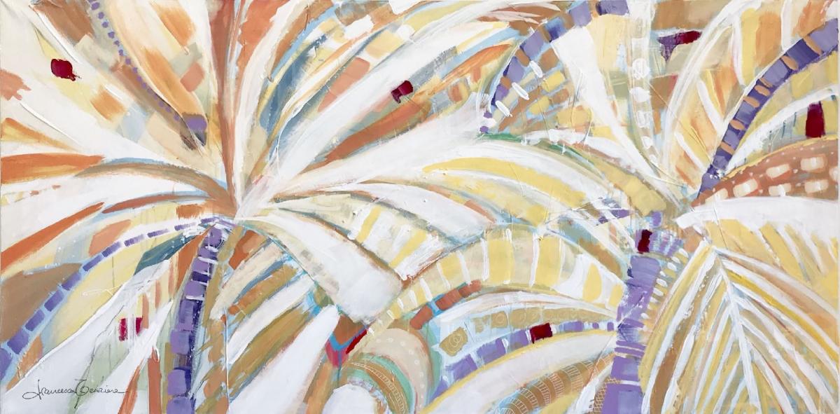 I was working at this botanical subject, inspired by the Palm trees. I liked the movement of its leaves and I directly put these lines in this large painting. I studied it during en plain air sessions of drawing, at the local botanical garden. This is experimentation, I was so free and happy to put here my sensations of the natural environment (in a natural way).
