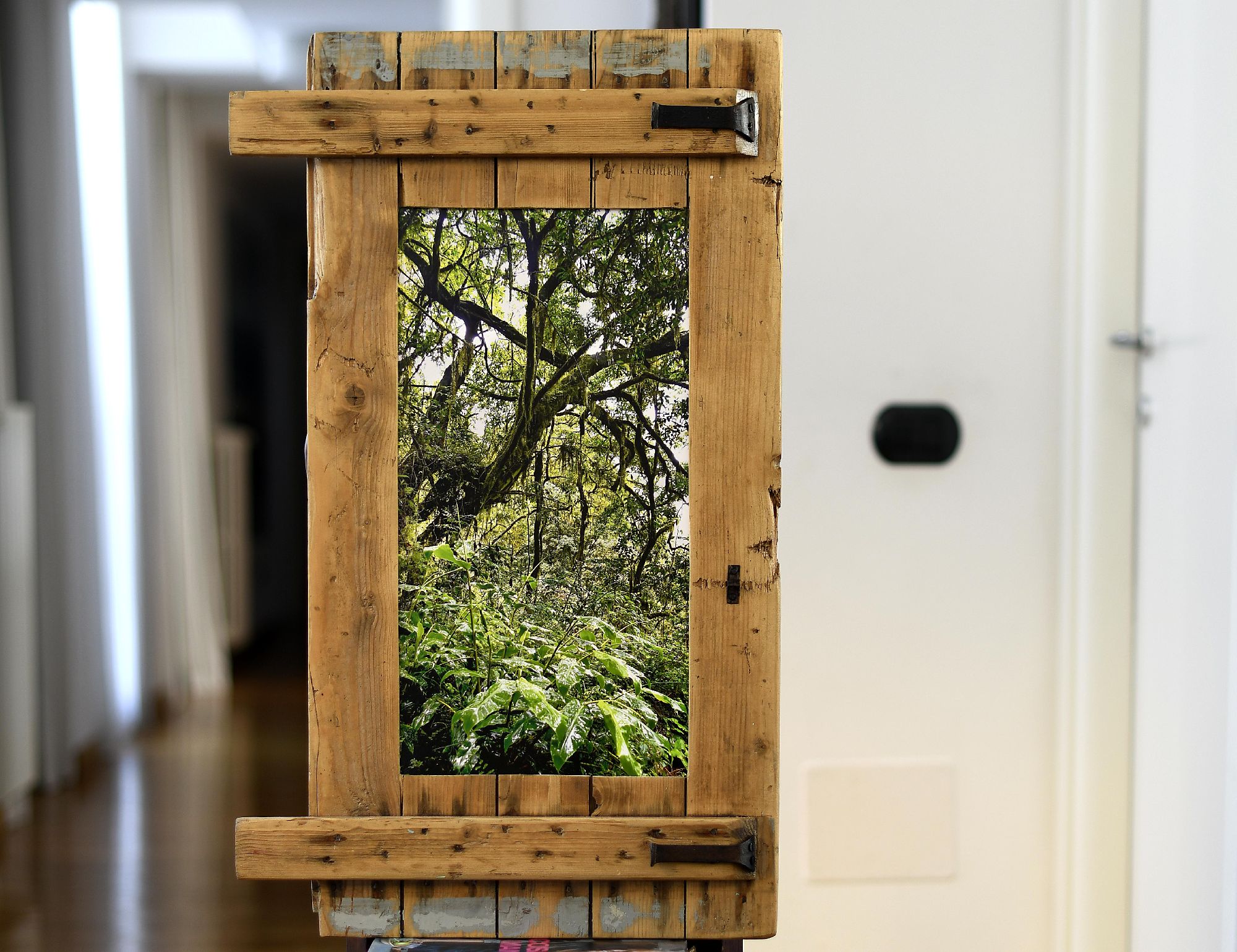 La foto scattata a Gennaio 2025, rappresenta la foresta nella gola di Garskop in SudAfrica. Ad Aprile 2025 la foto è stata stampata su carta Hahnemühle FineArt Baryta certificata 325 gsm, montata su Dibond e inserita in uno sportello di legno, portato dal mare, di un gavone di una vecchia barca.