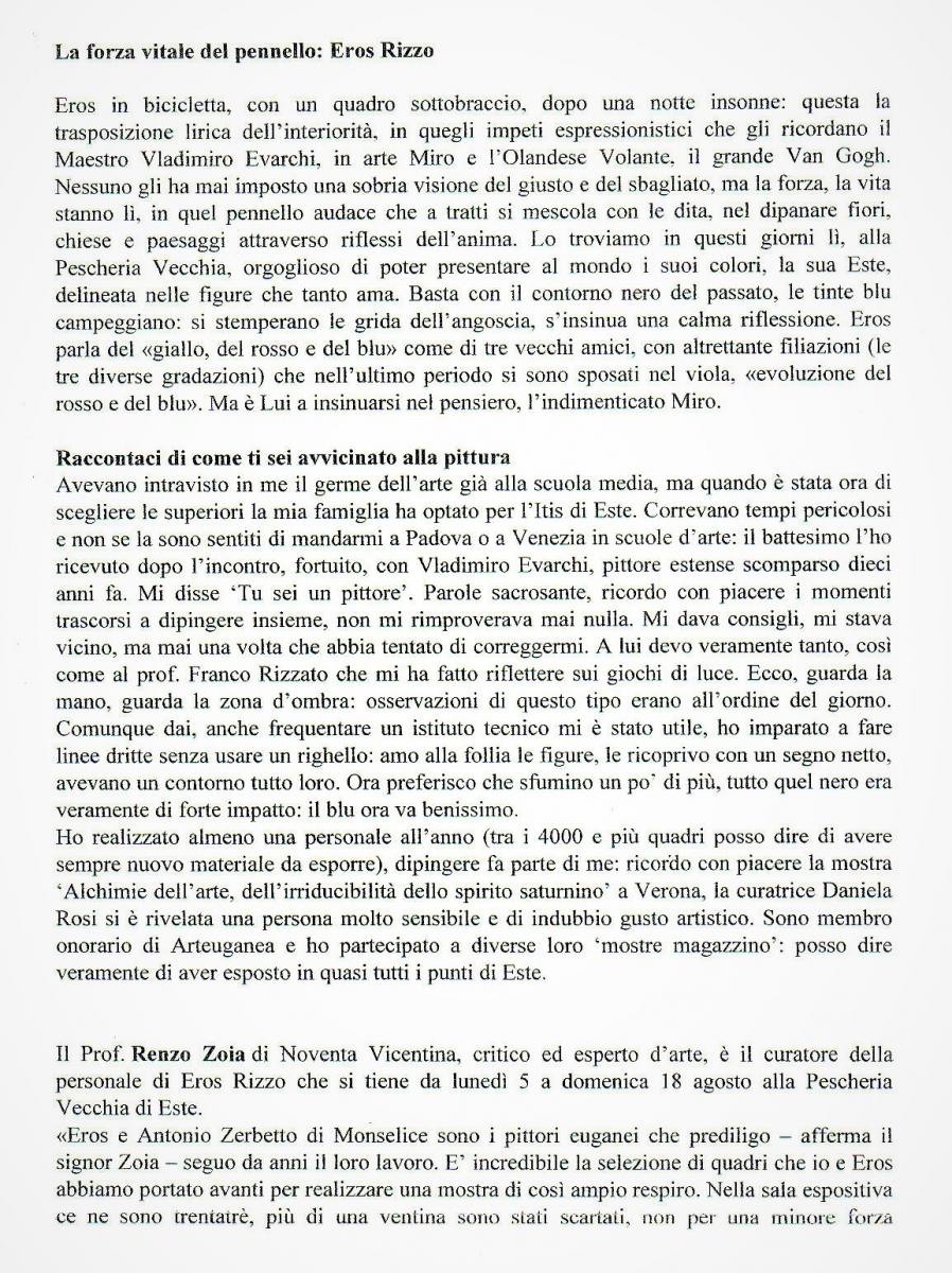 LA FORZA VITALE DEL PENNELLO: EROS RIZZO