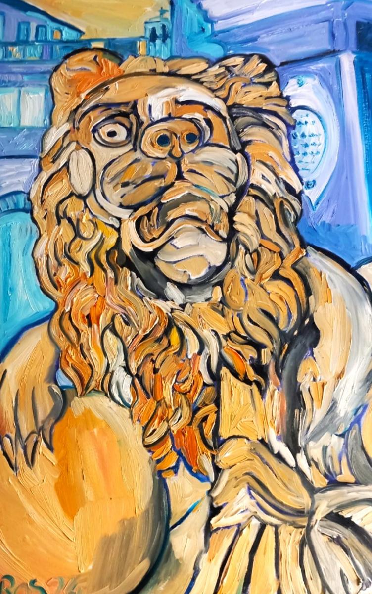 Particolare del leone nella piazza di Este