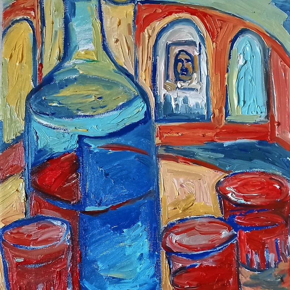 NATURA MORTA CON BOTTIGLIA E BICCHIERI