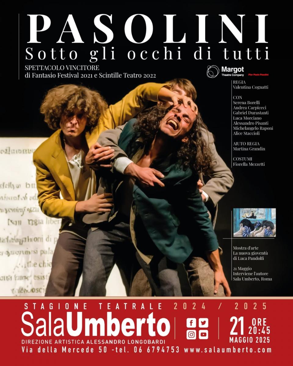 Bellissima collaborazione con www.margot-theatre.it e la loro potente e innovativa opera PASOLINI. SOTTO GLI OCCHI I TUTTI. Nel Foyer del teatro Sala UMBERTO le mie opere dedicate a Pier Paolo Pasolini del 2022 e del 2023.