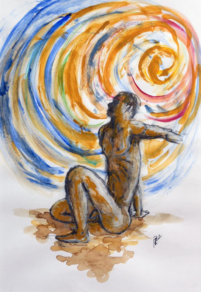 - Tecnica: Carboncino acquarellato con caffè e acrilico