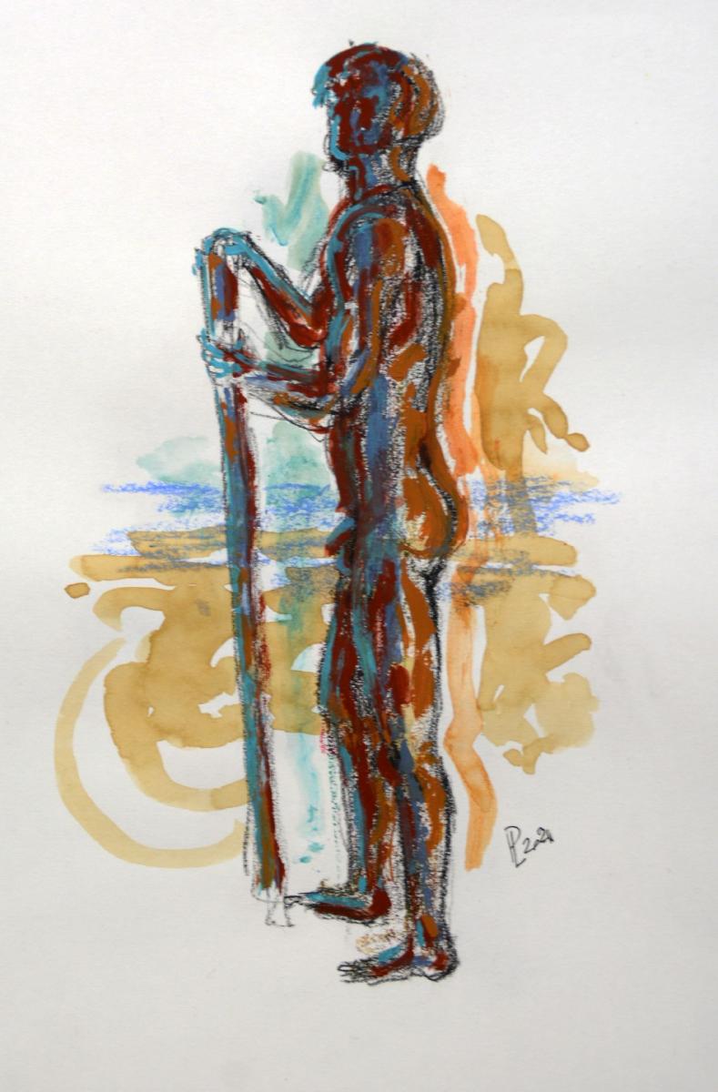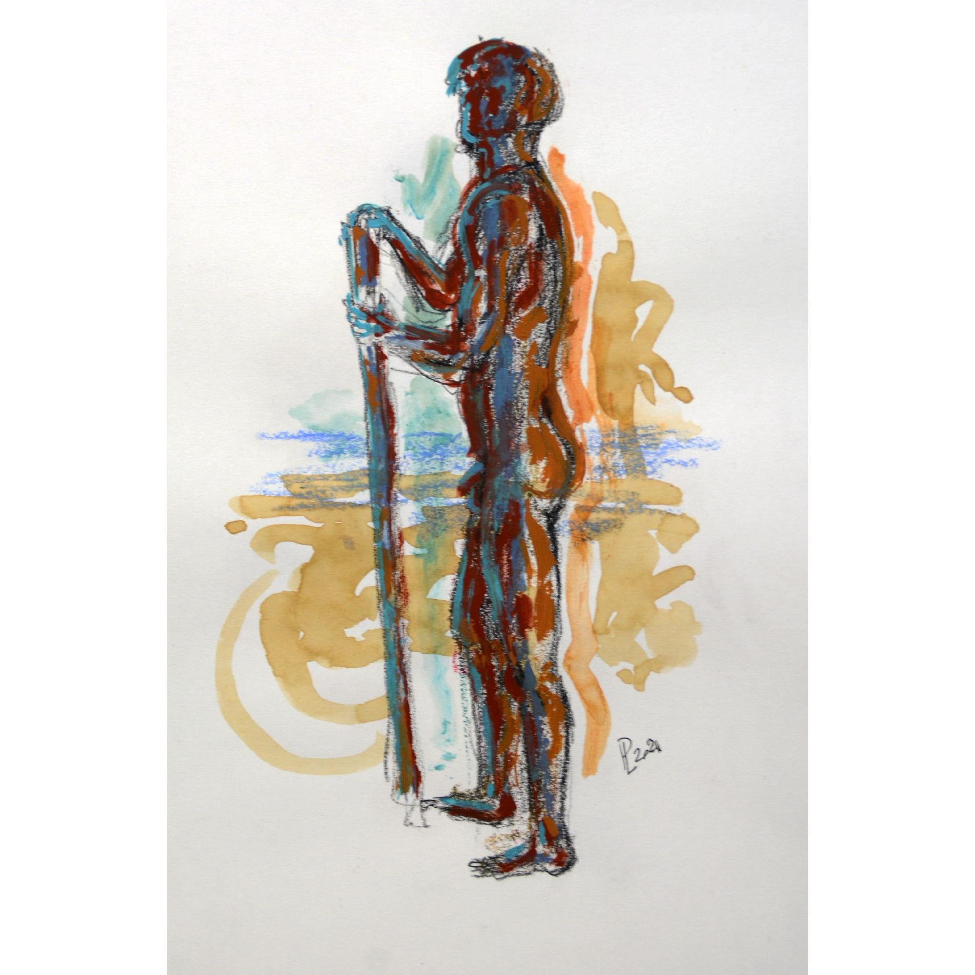 - Tecnica: Carboncino acquerellato con caffè e acrilico