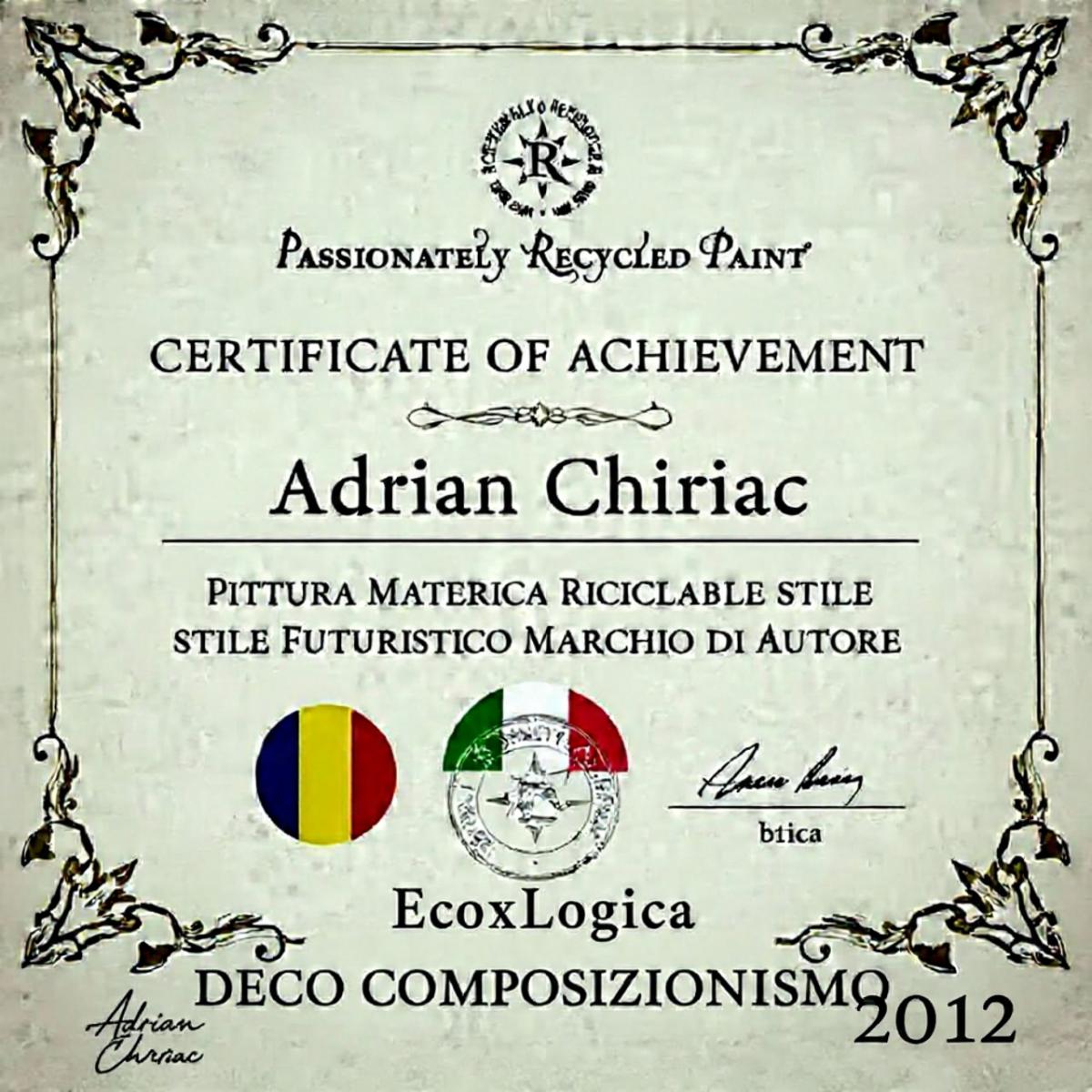---*EcoxLogica - Deco Composizionismo* Roma, 14 aprile 2026*Oggetto: Attestazione Coefficiente di Vendita - Opera "Pittura Materica Riciclabile Stile Futuristico"*http://Spett.le Collezionista / Galleria,Con la presente si attesta ufficialmente il coefficiente di vendita attribuito alle opere appartenenti al ciclo *"Pittura Materica Riciclabile Stile Futuristico"* dell’artista *Adrian Chiriac*, marchio di autore EcoxLogica - Deco Composizionismo.*1. Definizione del Coefficiente*Il coefficiente di vendita è il parametro utilizzato per determinare il valore di mercato di un’opera d’arte. Si calcola moltiplicando il coefficiente per la somma di base + altezza della tela, espressa in centimetri.*Formula*: `(Base + Altezza) x Coefficiente = Valore Opera €`*2. Coefficiente Attribuito*Per il ciclo "Pittura Materica Riciclabile Stile Futuristico", firmato Adrian Chiriac, viene stabilito il seguente coefficiente ufficiale:*Coefficiente di vendita: 80.000 €*Tale coefficiente si applica a tutte le opere inedite e certificate di questo specifico stile, realizzate con tecnica materica su materiali riciclati e marchiate con timbro d’autore EcoxLogica.*3. Motivazioni del Coefficiente*Il valore assegnato deriva da: - *Unicità della tecnica*: Pittura materica ottenuta esclusivamente da materiali riciclati, con brevetto di processo stilistico futuristico.- *Rarità*: Produzione limitata e certificata dal 2012.- *Marchio d’Autore*: Opere accompagnate da certificato d’autenticità "Passionately Recycled Paint" con firma e timbro a secco.- *Posizionamento*: Coerenza con quotazioni internazionali per arte sostenibile e futurismo contemporaneo.*4. Esempio di Calcolo*Opera su tela 100x80 cm `(100 + 80) x 80.000 € = 14.400.000 €`Il presente documento ha valore di certificazione ufficiale del coefficiente per gallerie, case d’asta e collezionisti privati.In fede,*Adrian Chiriac* Artista / Fondatore EcoxLogica _firma_EcoxLogica - Deco Composizionismo Pittura Materica Riciclabile Stile Futuristico Marchio di Autore since 2012