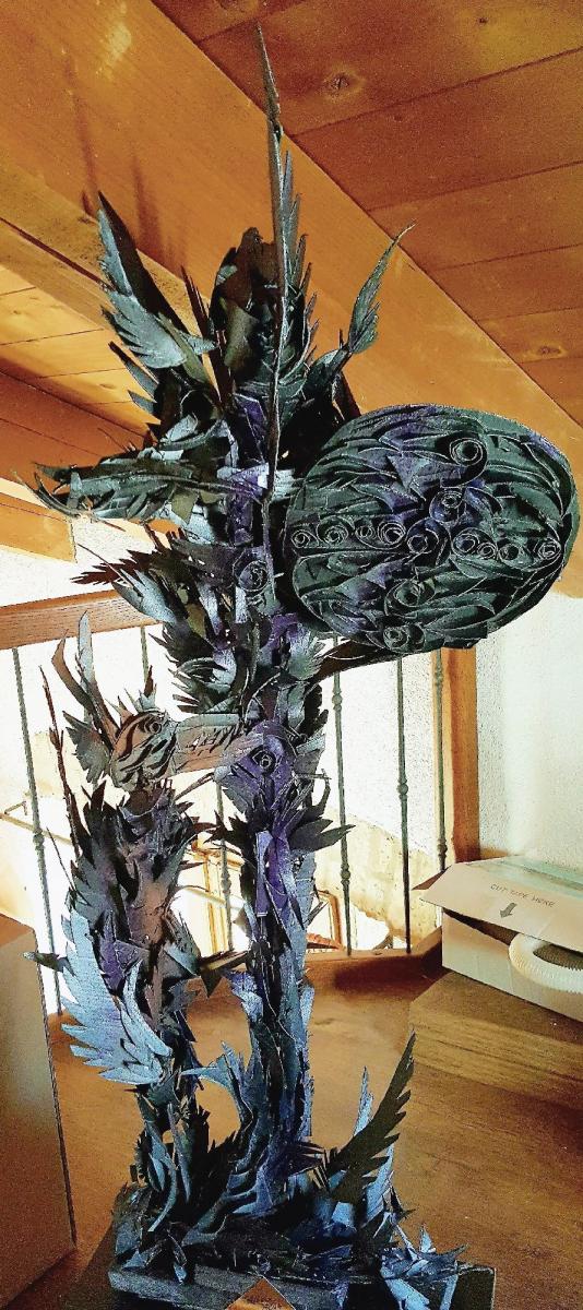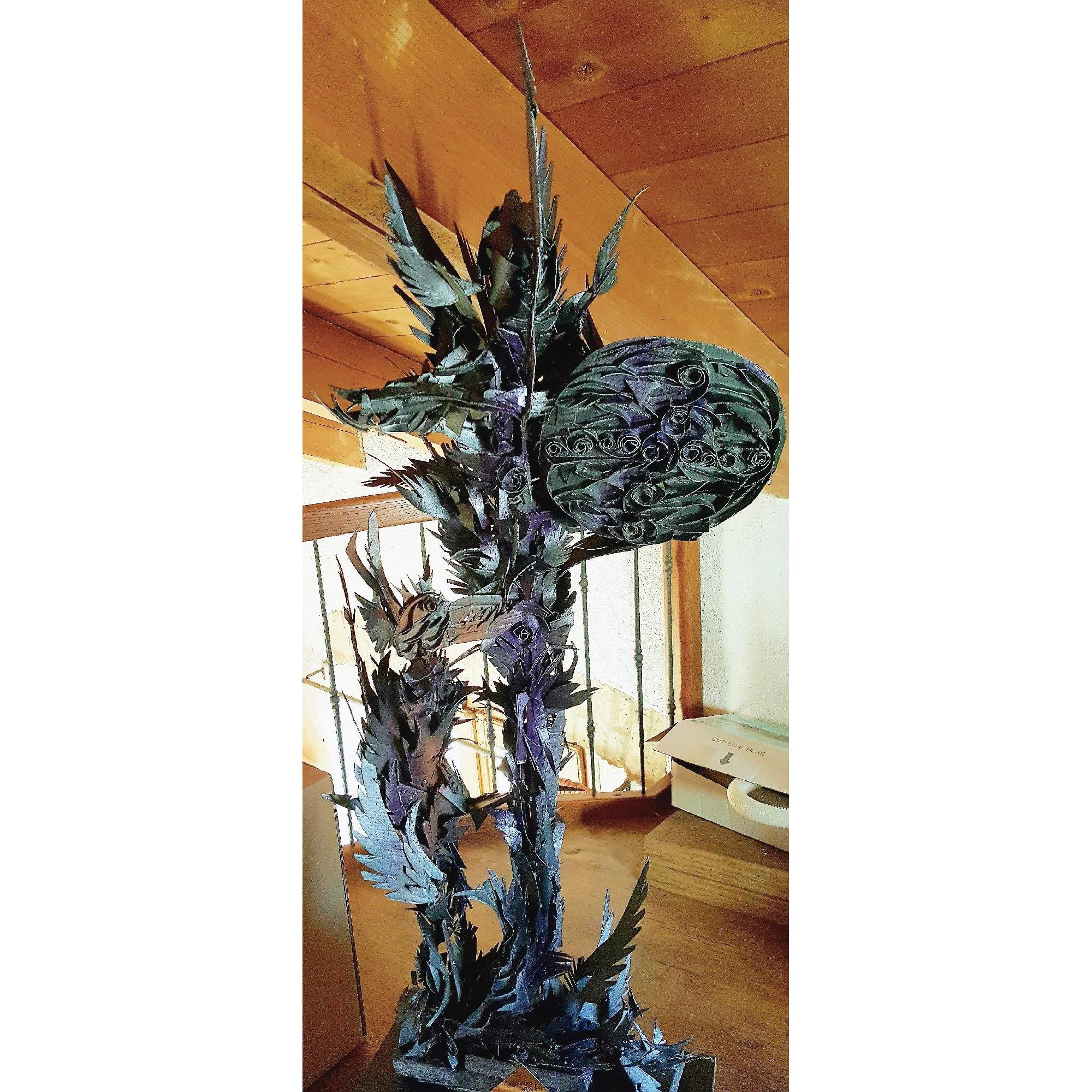 Opera creata con materiali da riciclo Rappresenta il cammino della vita mai Statica e ferma ma sempre in movimento Come una spirale che insegue Eternamente il suo centro