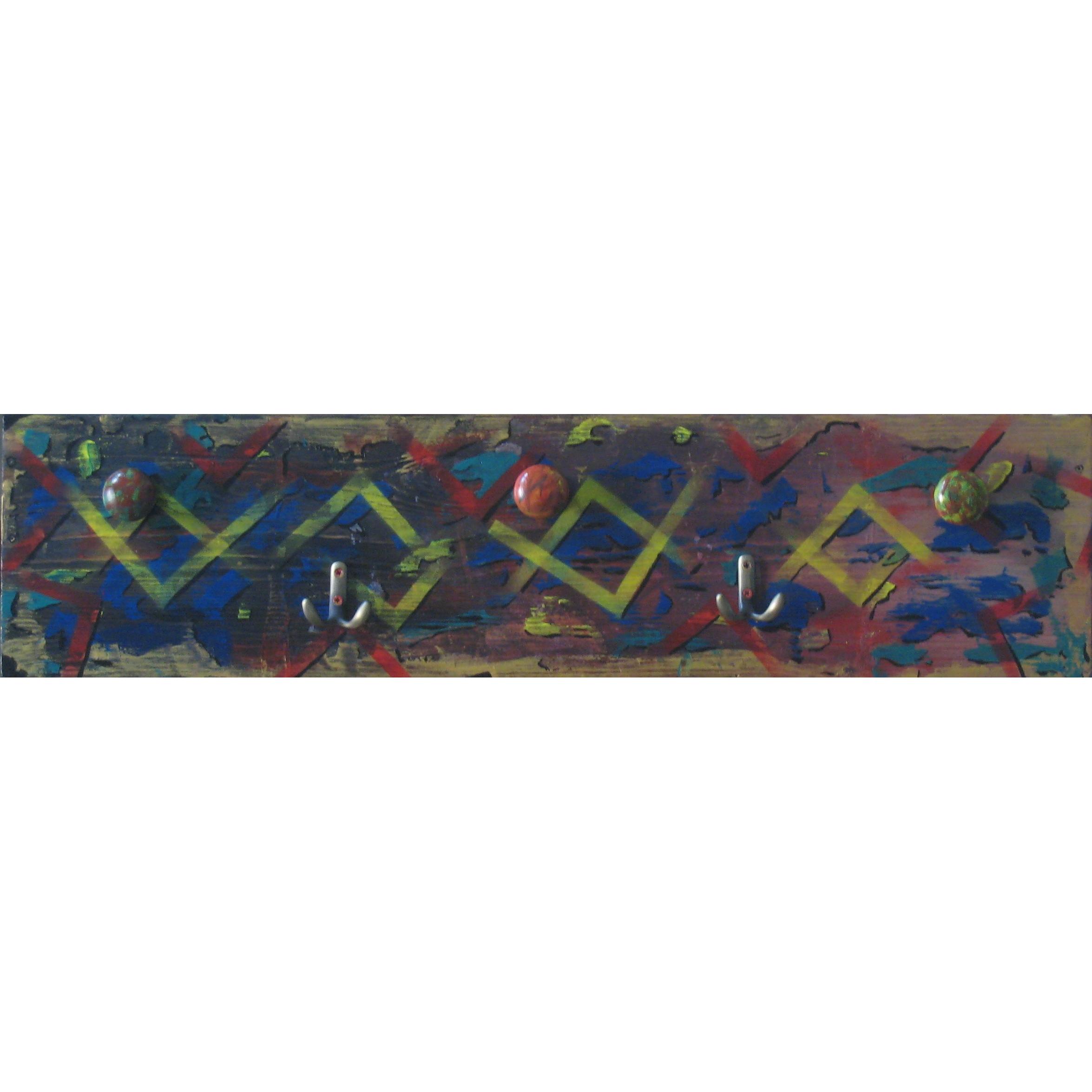 Tavola appendiabiti con tre pomelli in legno e due in ottone