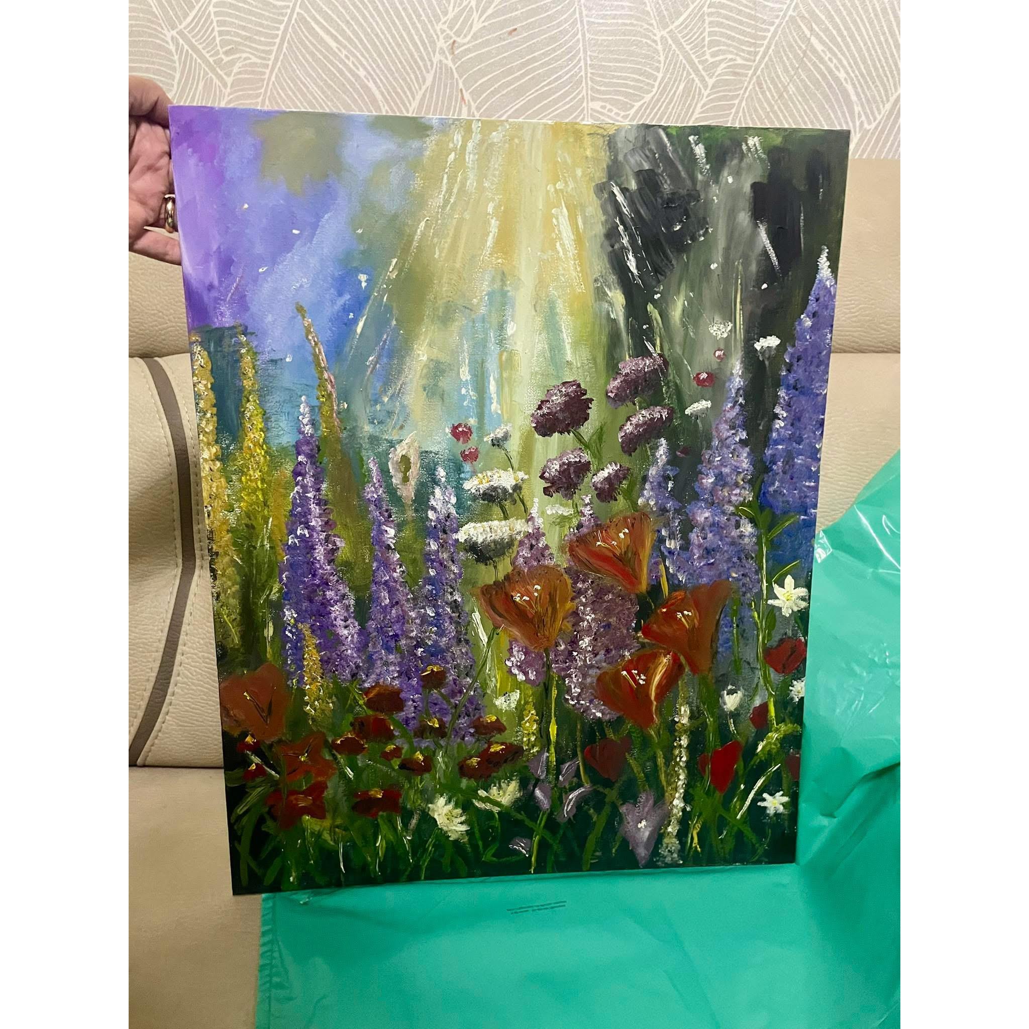 Nel complesso, il dipinto trasmette un senso di pace, abbondanza e meraviglia naturale: è un giardino che sembra respirare luce, un luogo che invita a fermarsi e lasciarsi avvolgere dalla sua armonia.