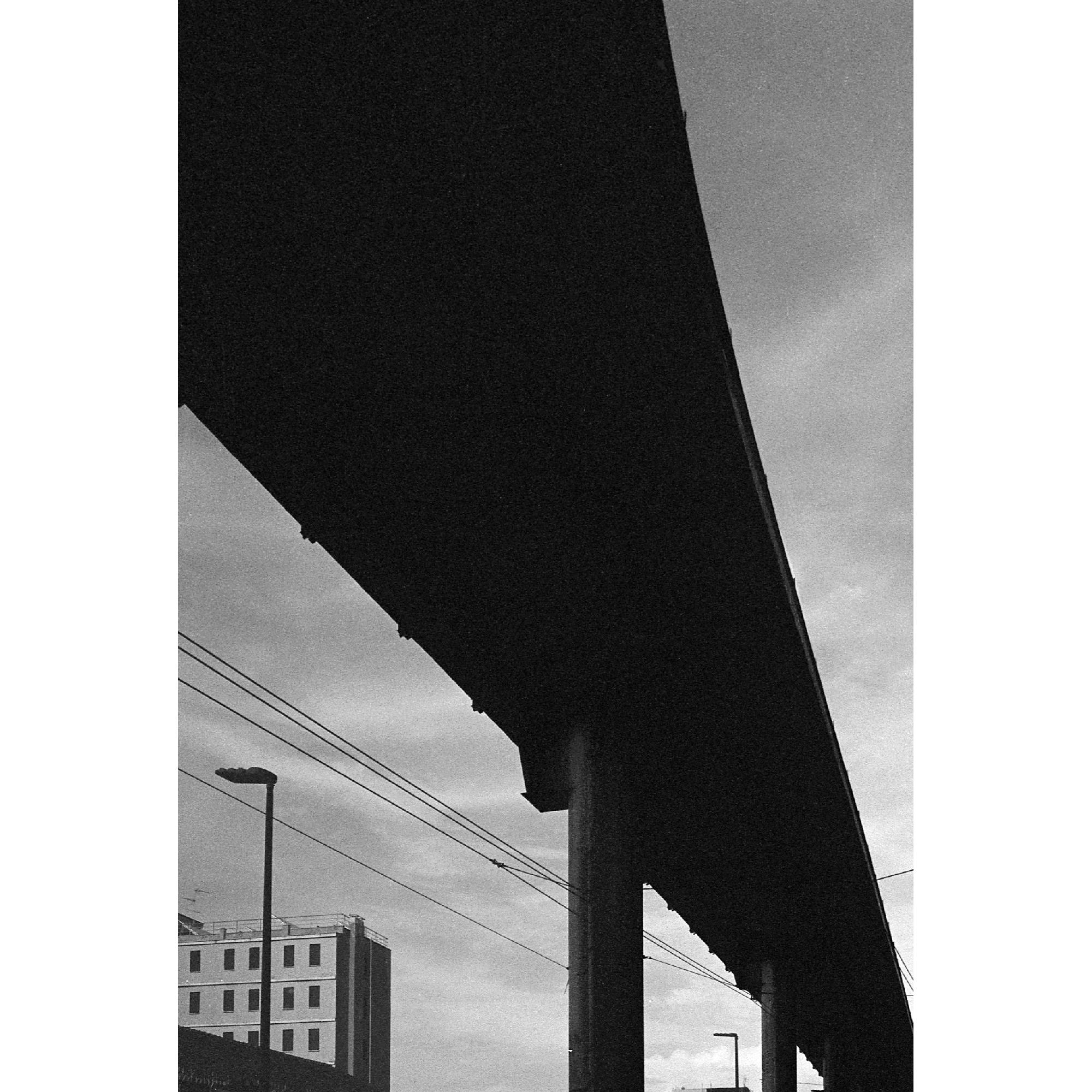 La fotografia ritrae un tratto iniziale della tangenziale che passa sopra la via Prenestina a Roma . E' parte della serie fotografica dedicata alla ricerca e allo sviluppo della fotografia ibrida Analogica/ Digitale. Trovo questo tipo di applicazione molto stimolante. E' stata realizzata con fotocamera Canon Minolta e pellicola Ilford HP5 Plus 400 ISO. La stampa è digitale Fine Art su carta fotografica Hahnemühle Photo Rag Satin A4, 310g.