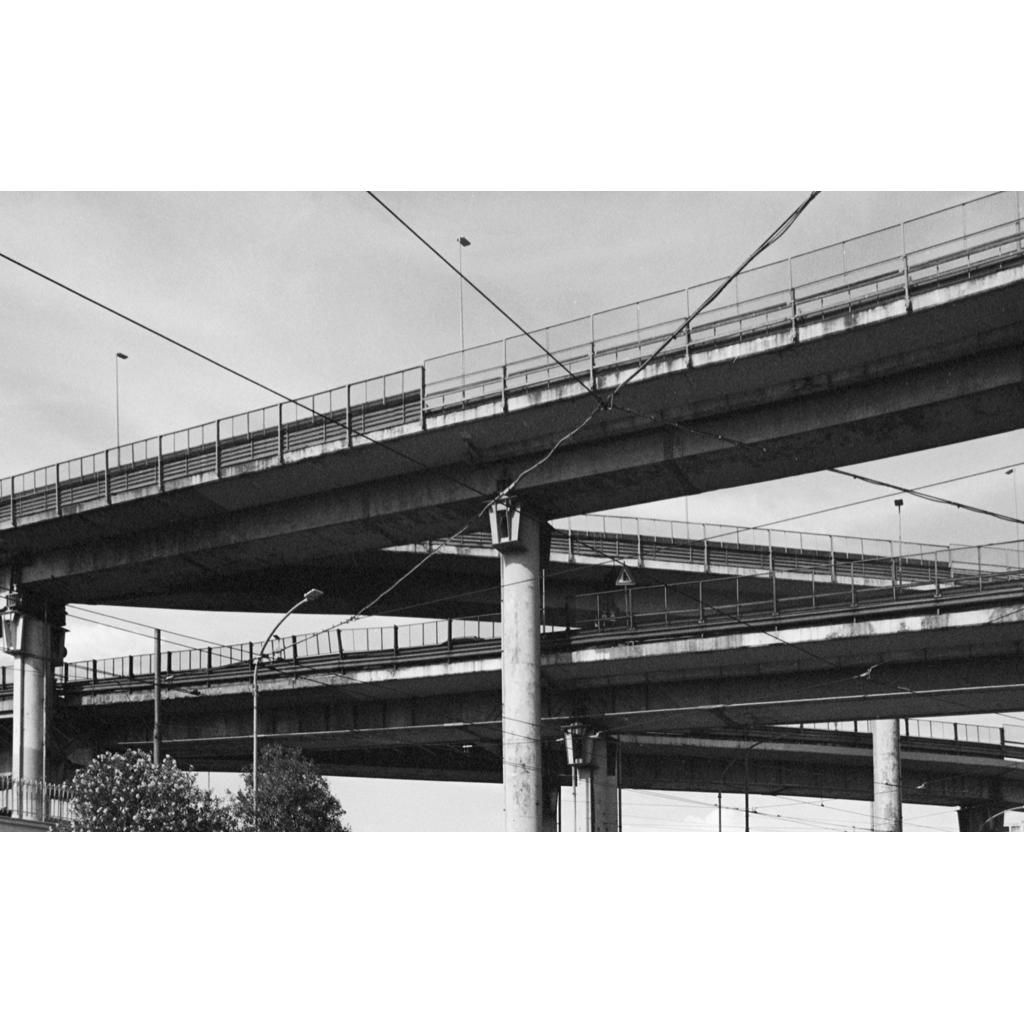 La fotografia è stata eseguita durante un'uscita fotografica con i miei corsisti. E' la parte della tangenziale Est di Roma sopra la via Prenestina. E' parte della serie fotografica dedicata alla ricerca e allo sviluppo della fotografia ibrida Analogica/ Digitale. Trovo questo tipo di applicazione molto stimolante. E' stata realizzata con fotocamera Minolta XT 700 e pellicola Ilford HP5 Plus 400 ISO. La stampa è digitale Fine Art su carta fotografica Hahnemühle Photo Rag Satin A4, 310g.