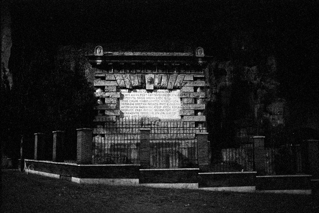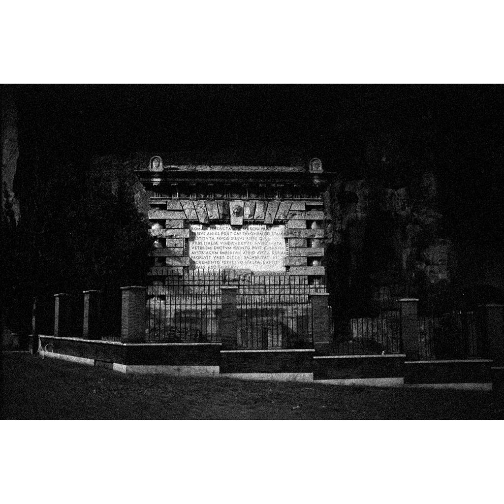 La fotografia ritrae uno scorcio di Porta Maggiore a Roma, in particolar modo la targa della storia dell'acquedotto romano. E' parte della serie fotografica dedicata alla ricerca e allo sviluppo della fotografia ibrida Analogica/ Digitale. Trovo questo tipo di applicazione molto stimolante. E' stata realizzata con pellicola Ilford Delta 3200 ISO.