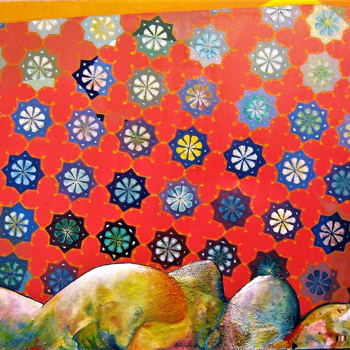 1988- L'angelo e la madre Terra- 120x110-olio su tela+sabbia