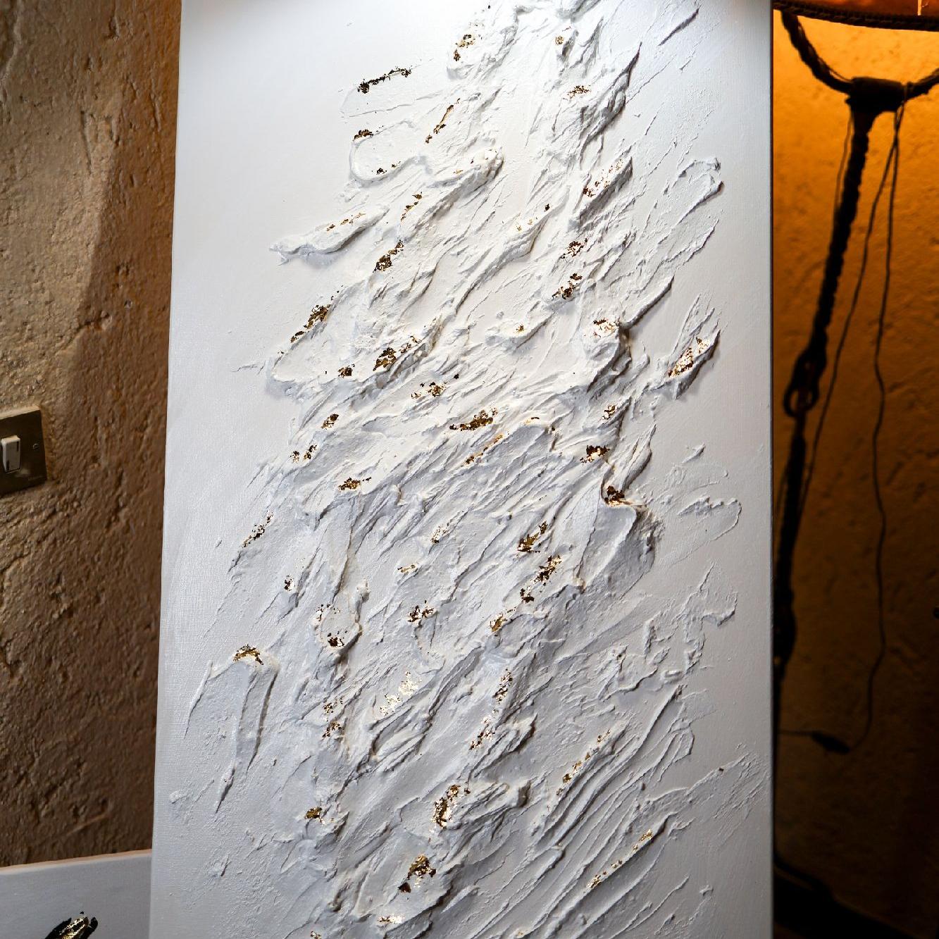 Sayan – Scultura da parete in cemento bianco e oro 24K