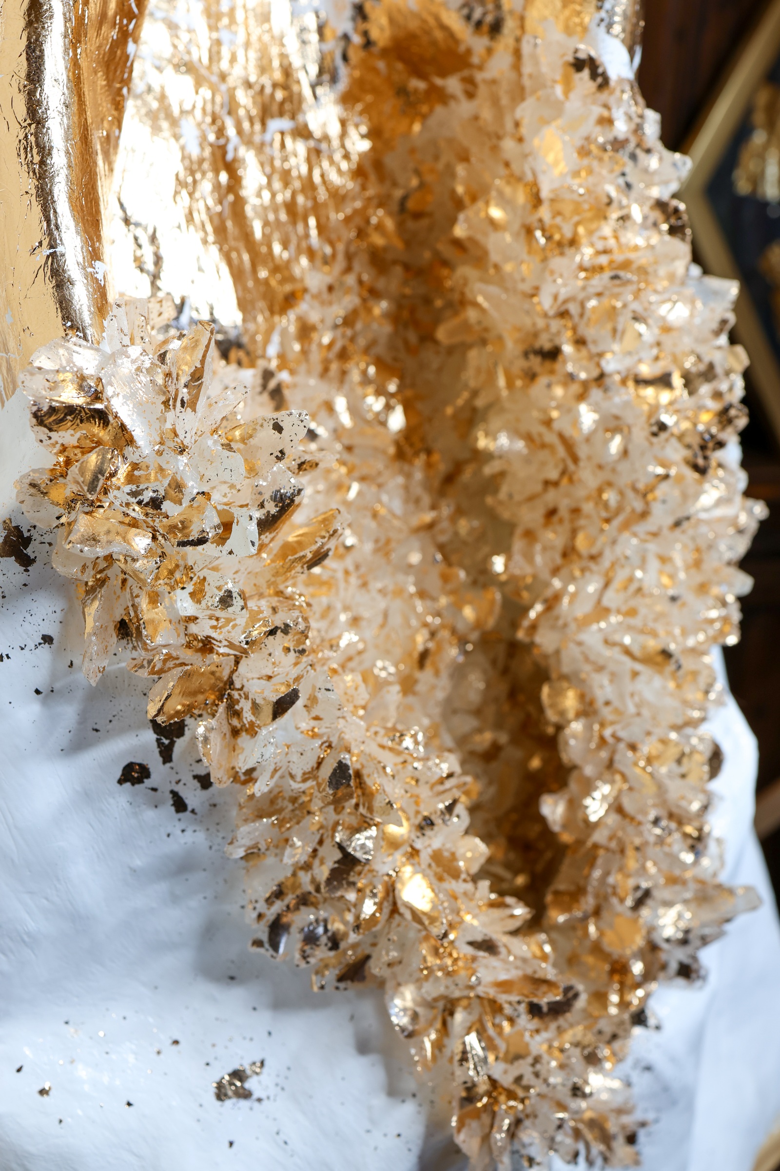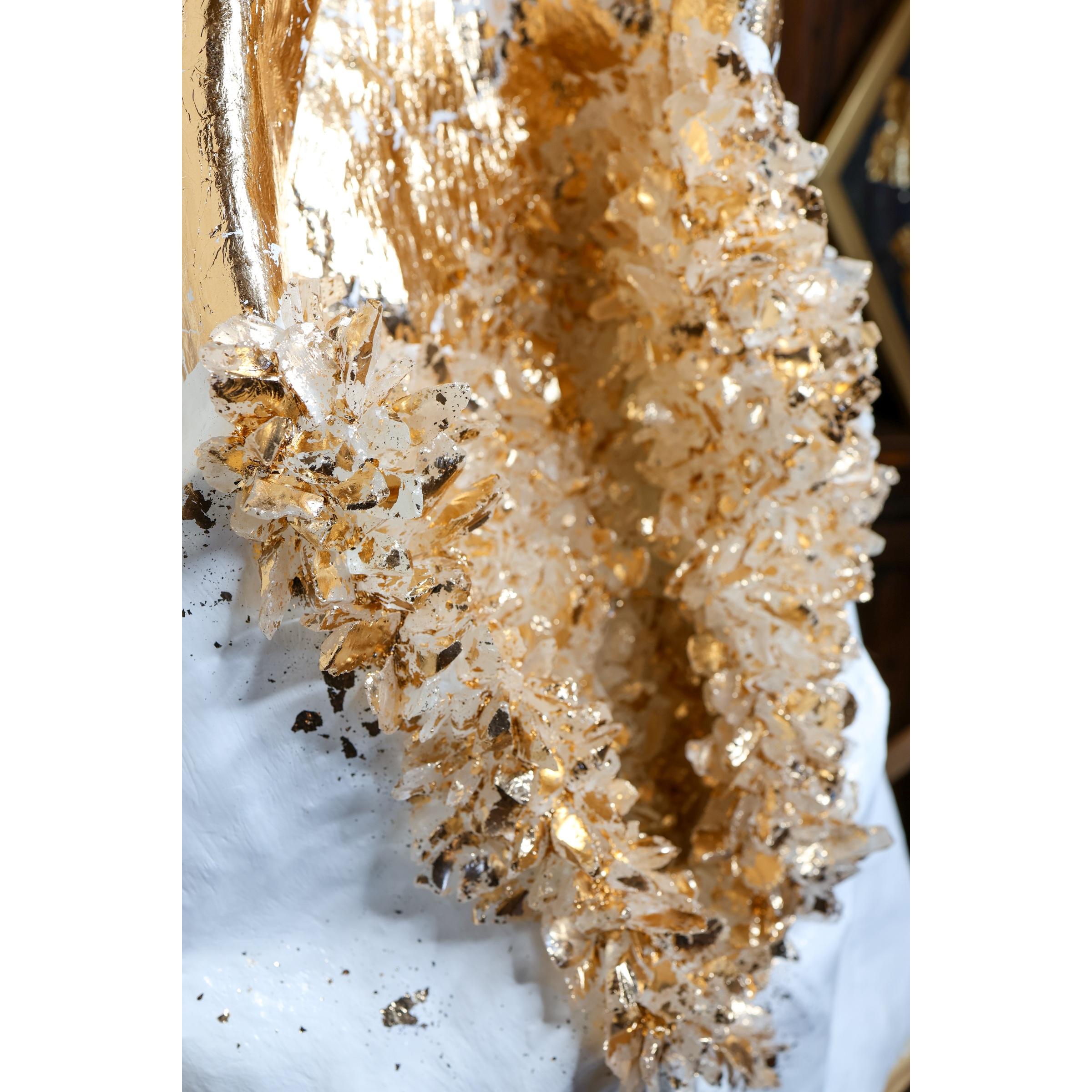 Ogni elemento è realizzato a mano, rendendo l’opera unica e irripetibile. L’applicazione dell’oro 24 carati e la composizione dei cristalli richiedono precisione, sensibilità e una ricerca estetica profonda. Il risultato è una scultura che unisce arte materica e lusso contemporaneo.
