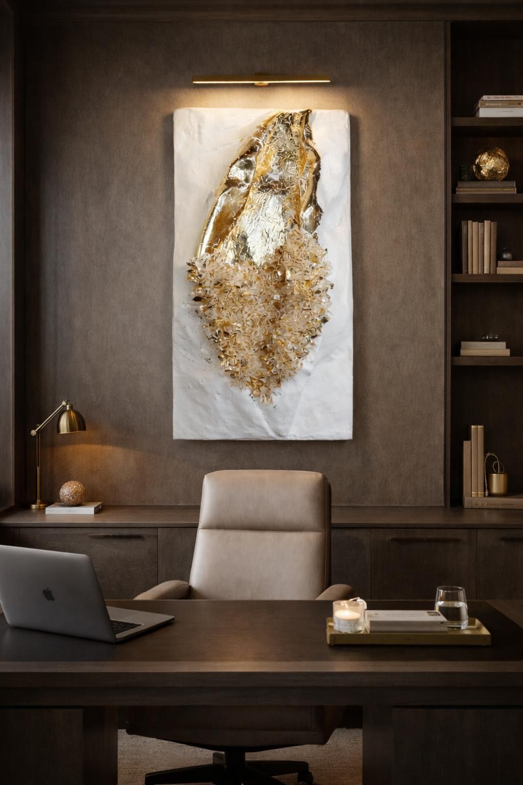 Tesoro racconta il valore interiore: ciò che appare solido e compatto può custodire luce, energia e preziosità inattese. L’opera esprime trasformazione, forza, rinascita e abbondanza. È pensata per ambienti di carattere – residenze di prestigio, hotel di design, spazi corporate, gallerie d’arte contemporanea – dove diventa punto focale e simbolo di esclusività.