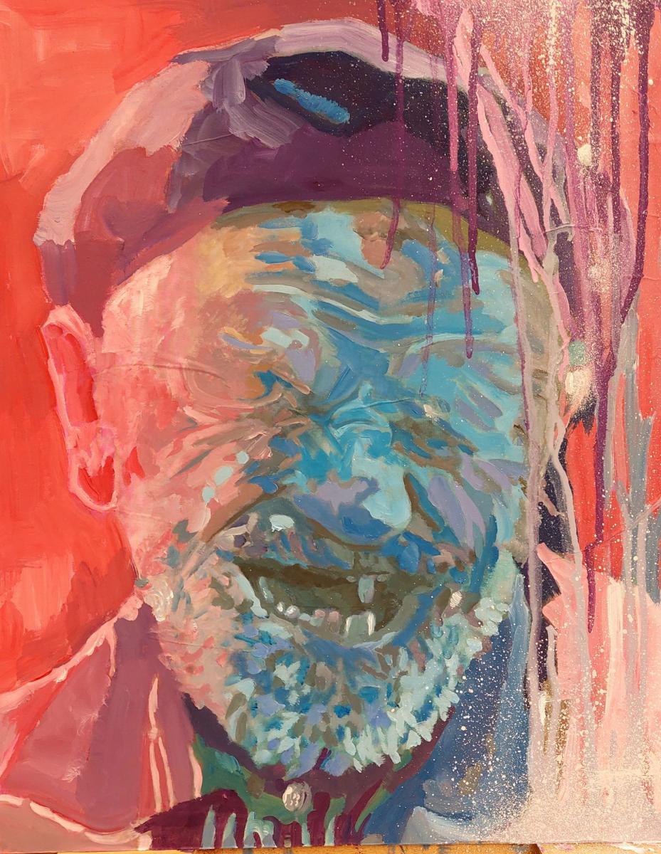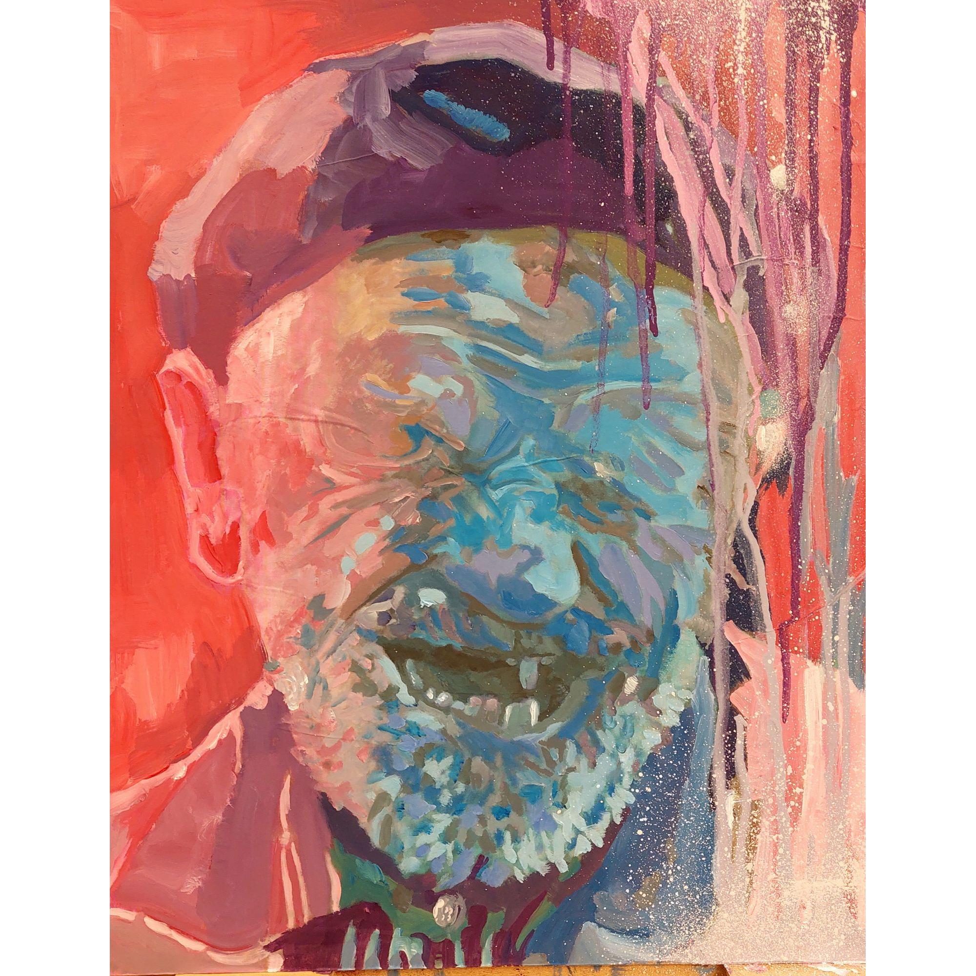 Quest’opera è un’esplosione di colore ed emozione, un ritratto che sfugge alla definizione tradizionale per abbracciare la materia pittorica come mezzo espressivo totale. L'immagine raffigura un anziano che ride, ma la sua identità non è mai davvero chiara: il volto è deformato, sommerso da colate di colore, da contrasti violenti e da gesti pittorici quasi gestuali, istintivi. Il sorriso – seppur spezzato e ambiguo – resta il fulcro emotivo dell'opera, un'apertura alla vitalità nonostante il tempo che passa; un'opera espressiva e vibrante, che celebra la fragilità e la forza dell'umano attraverso un gesto pittorico libero e vitale.