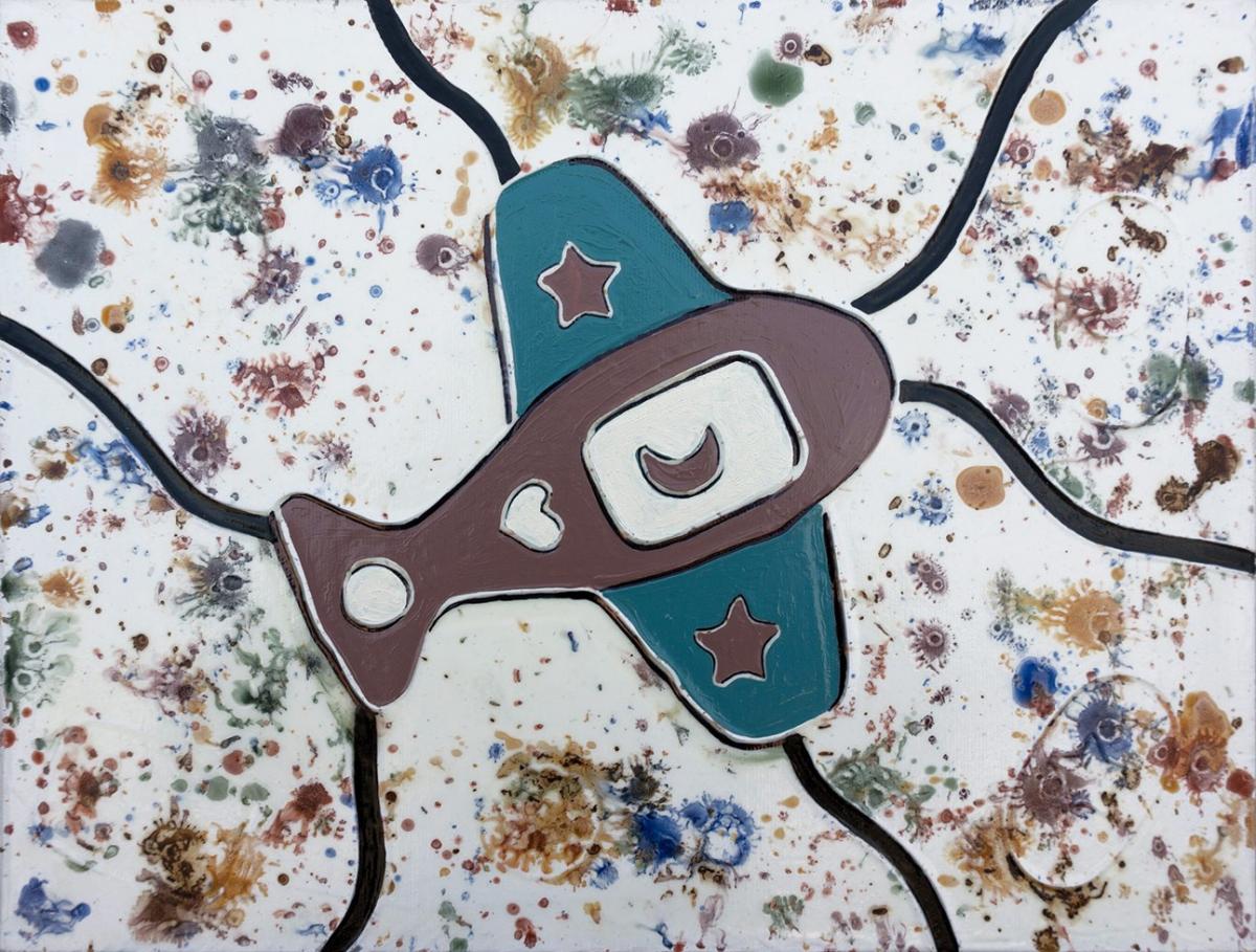 This collection of works is conceived by the child in us, who loves to imagine what today a hypothetical prehistoric man would paint on the rocky wall of the cave. No more horses or bisons, because they are no longer visible in the cities where we live. Andrea Benetti portrays what are now some of the symbols of our civilization, present in everyday life. The symbols are cars, planes, scooters, sailboats, golfers and floral arrangements. The works are composed of bas-reliefs created with chalk on canvas, antiqued with cocoa, turmeric, henna, coffee and finished with oil colors.