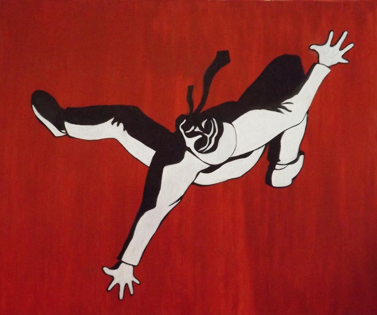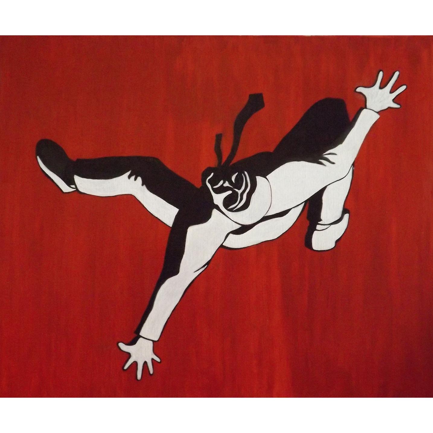 L'opera raffigura un corpo umano chiaramente maschile che cade rovinosamente. Il volto del personaggio è rivolto verso lo spettatore con un'espressione di paura e smarrimento. L'opera non fornisce alcun dettaglio o informazione sulla persona raffigurata. Ogni maschio può identificarsi con il personaggio che simboleggia il crollo delle tradizionali certezze maschili di fronte alla crescita del ruolo delle donna nella società e nel conseguente svelamento del potere patriarcale che viene così messo in discussione.