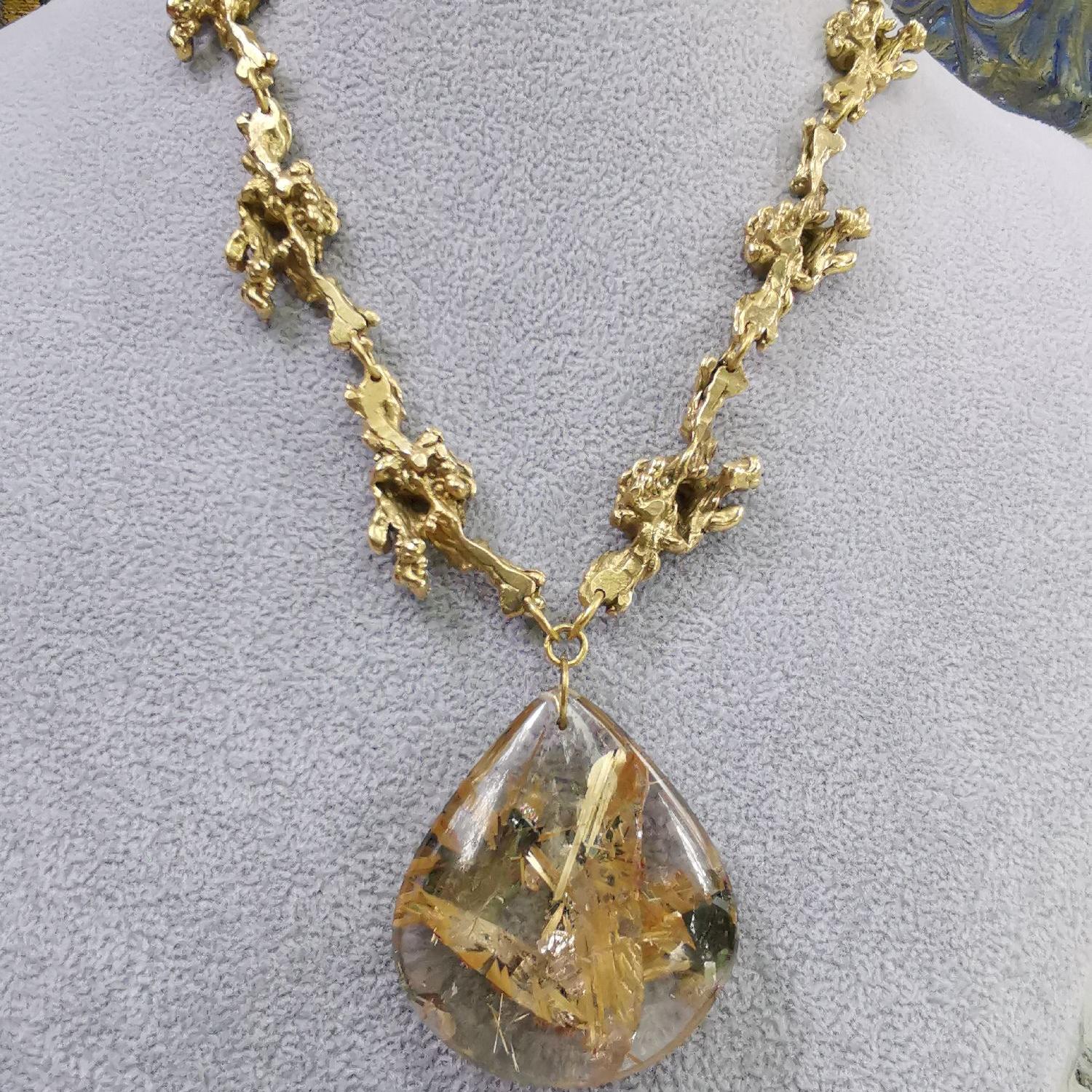 Collier in bronzo giallo con 200 carati di quarzo rutilato