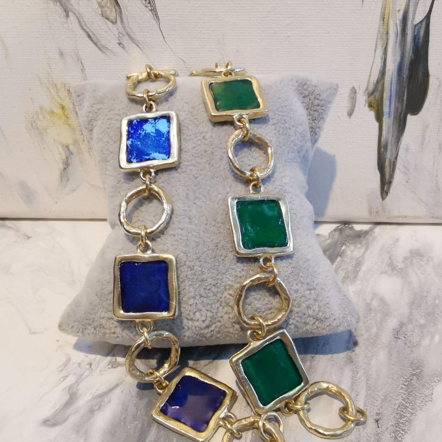 Bracciali in bronzo giallo con smalti polso 18