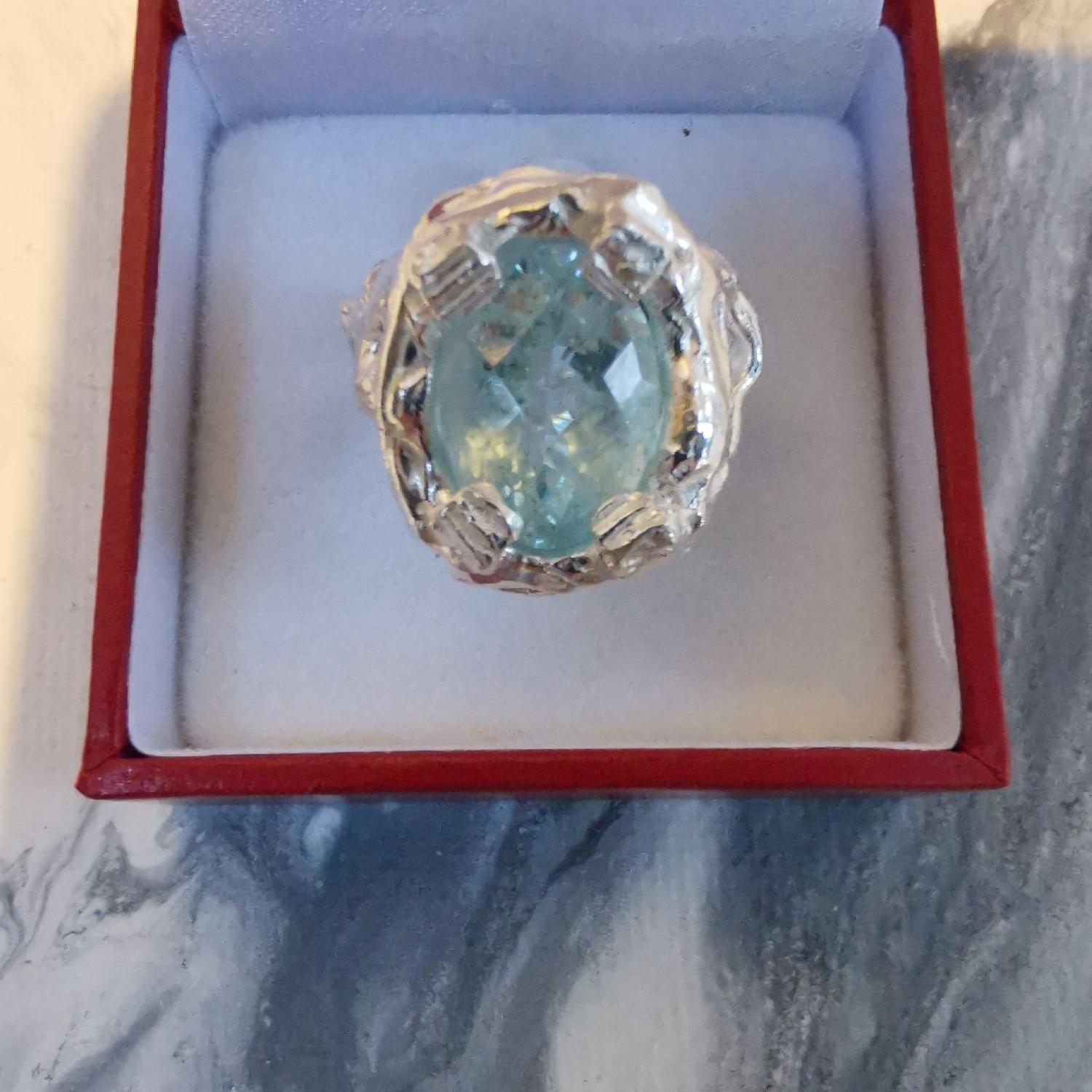 Anello in argento 925 con acqua marina di ct 5,35 regolabile