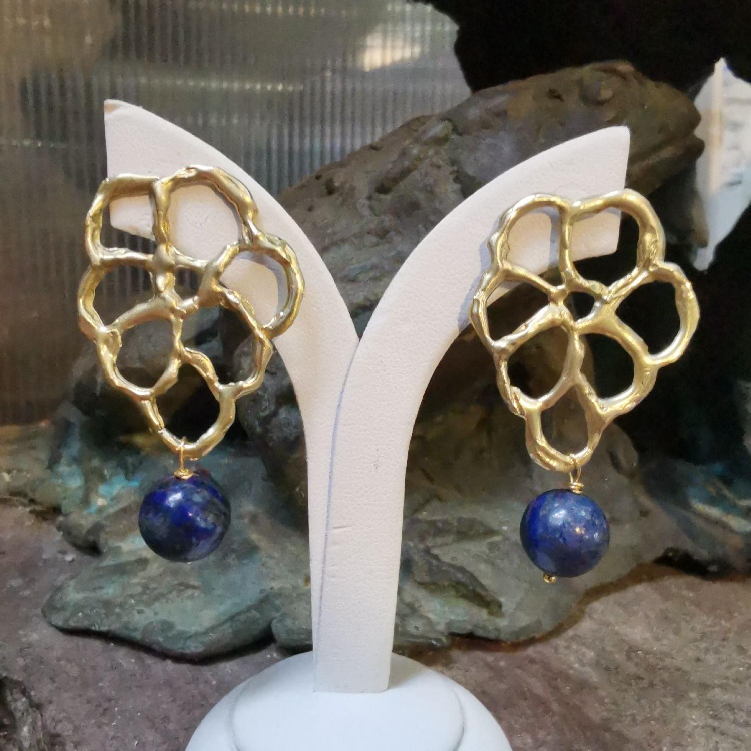 Pezzo unico in bronzo giallo con lapislazzuli cm5