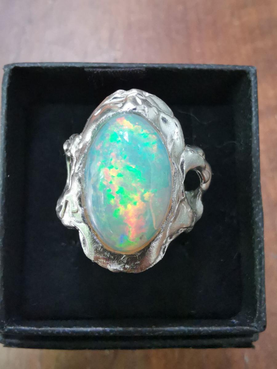 Anello in argento 925 regolabile con Opale etiope di ct5,60