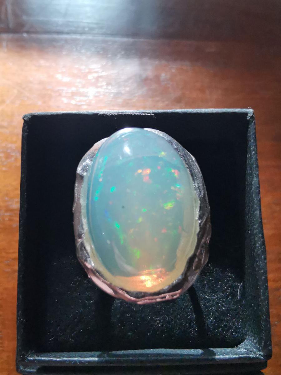 Anello in argento 925 regolabile con Opale etiope di ct 15,35