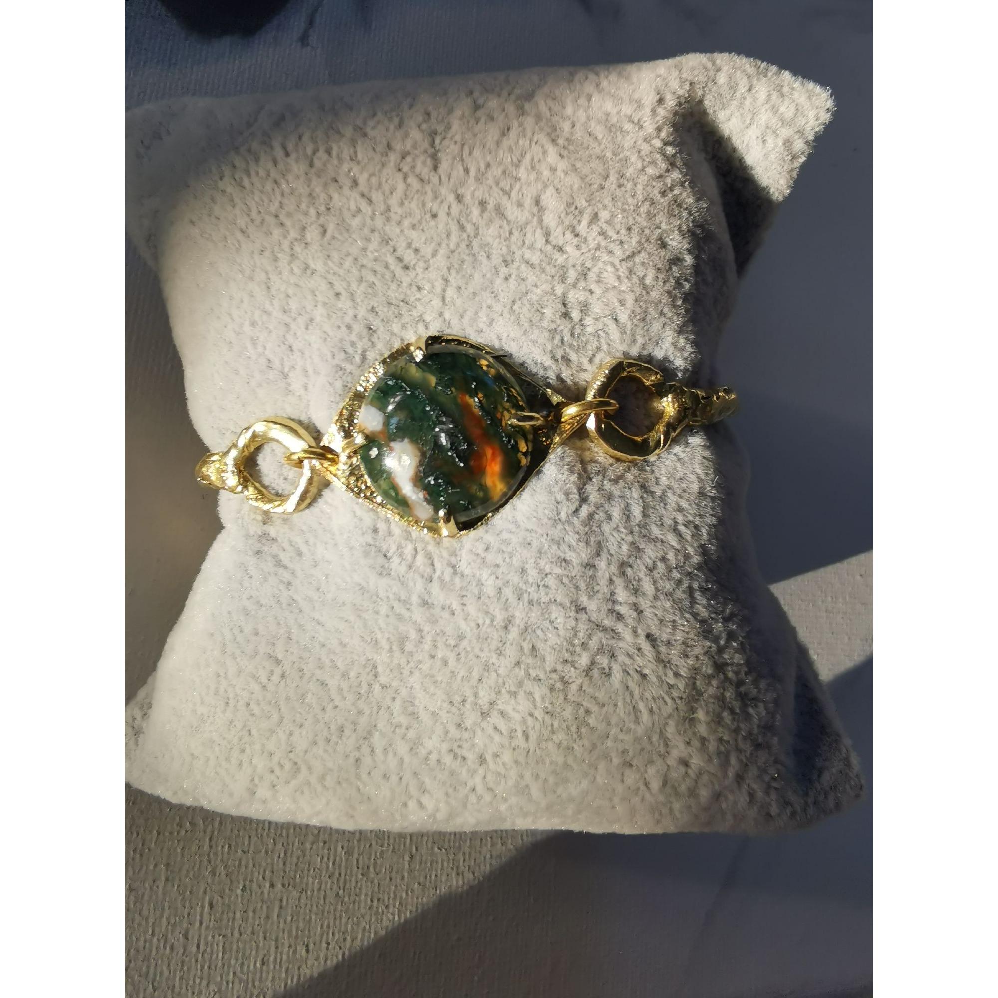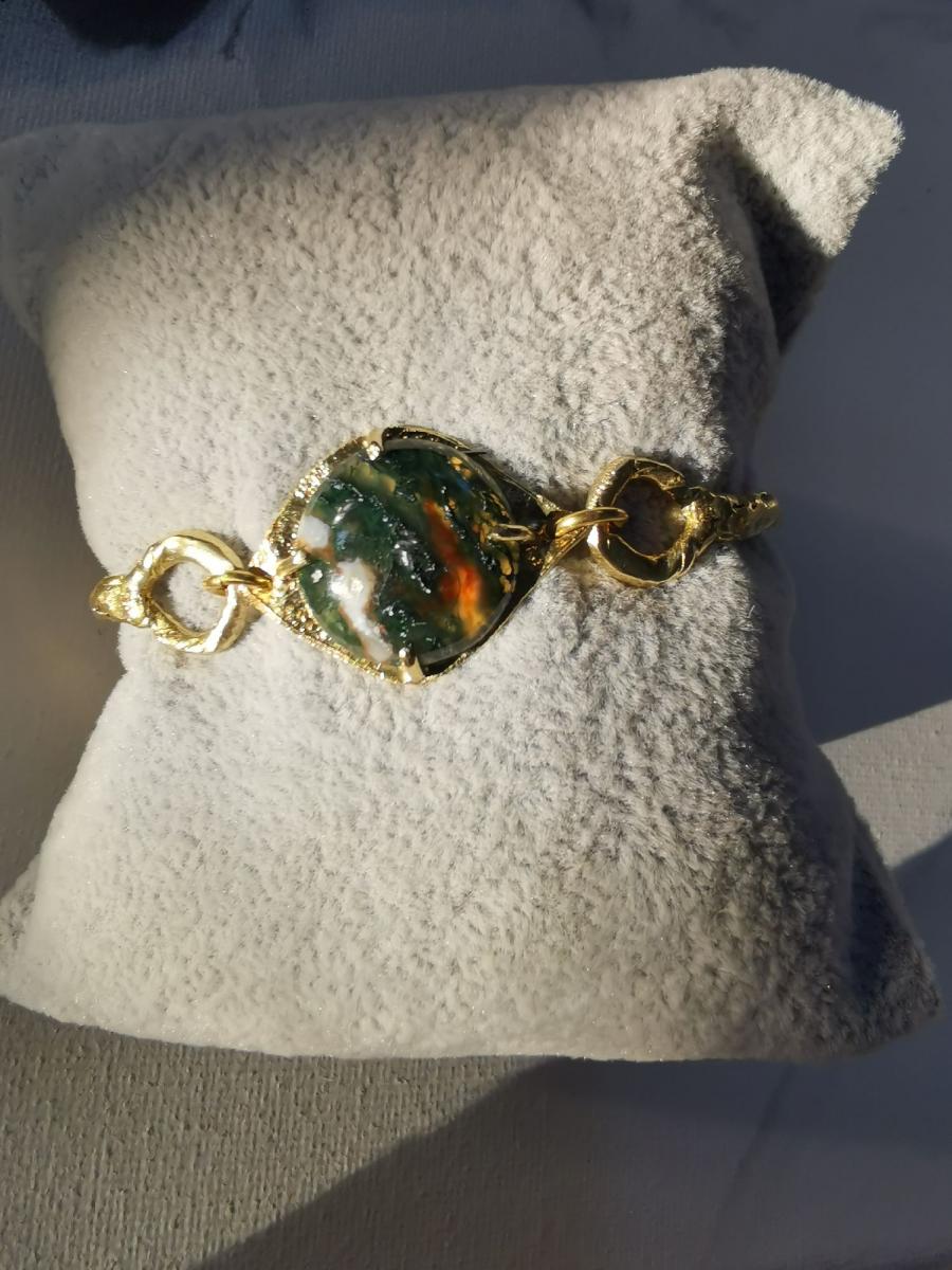Bracciale in bronzo giallo con Agata muschiata polso regolabile