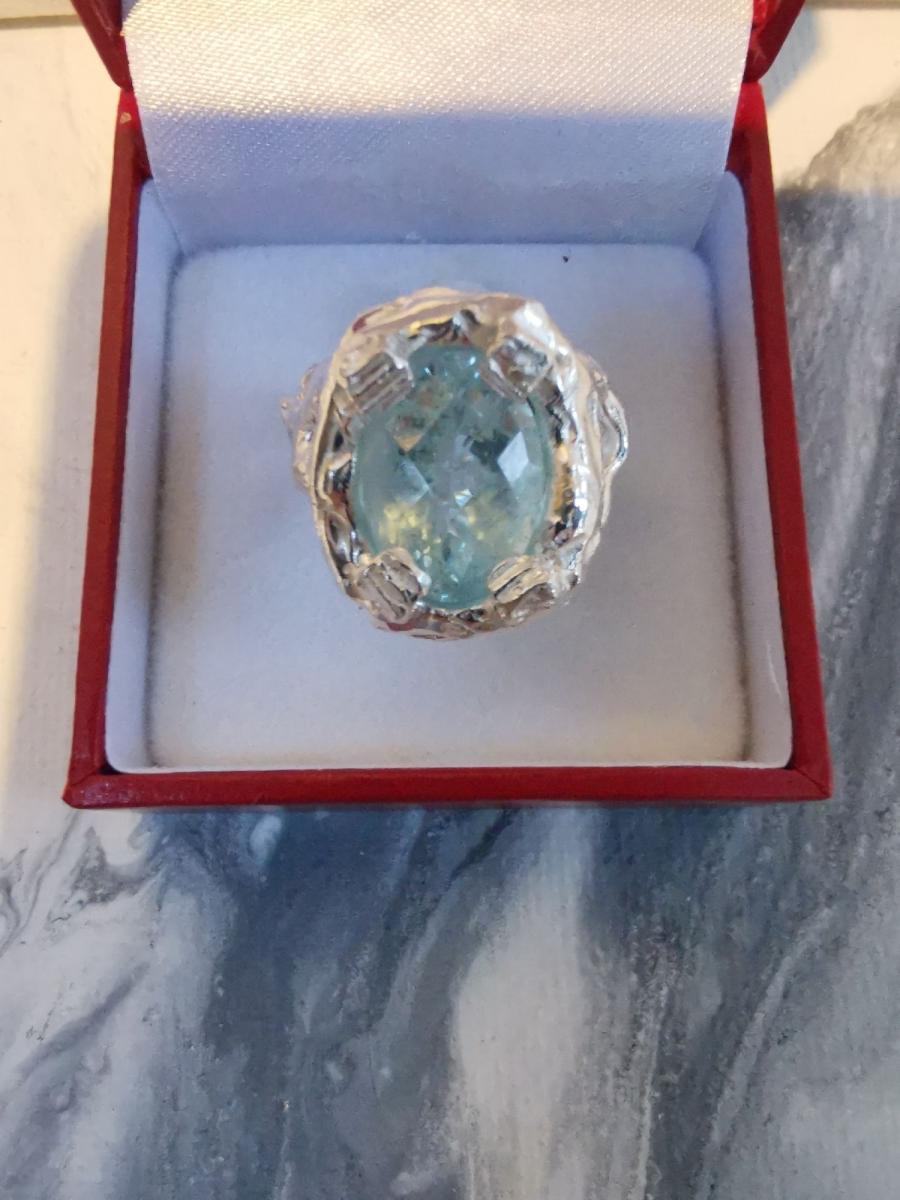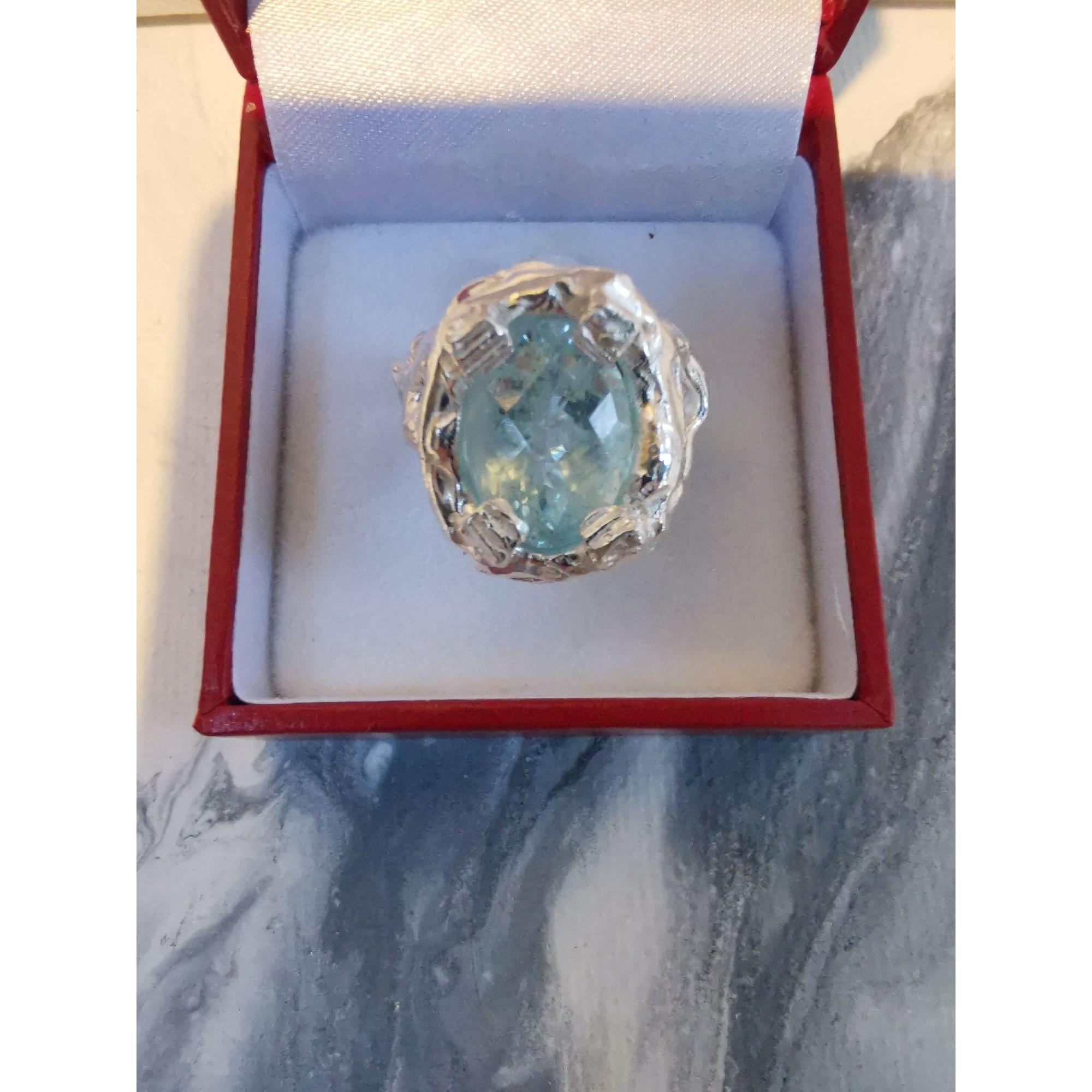 Anello in argento 925 con acqua marina di ct 5,35 regolabile
