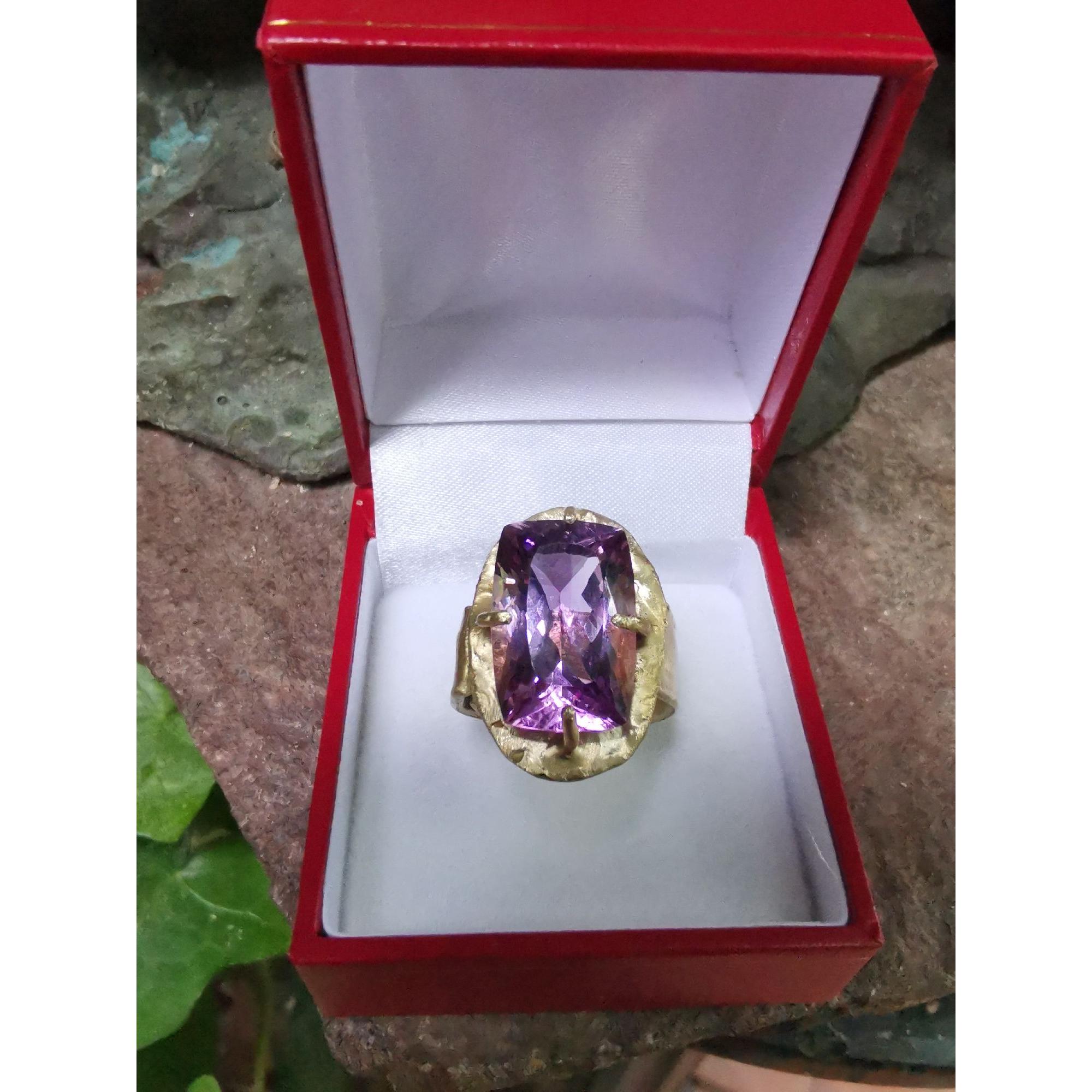Anello regolabile in bronzo giallo con ametista ct 12,95