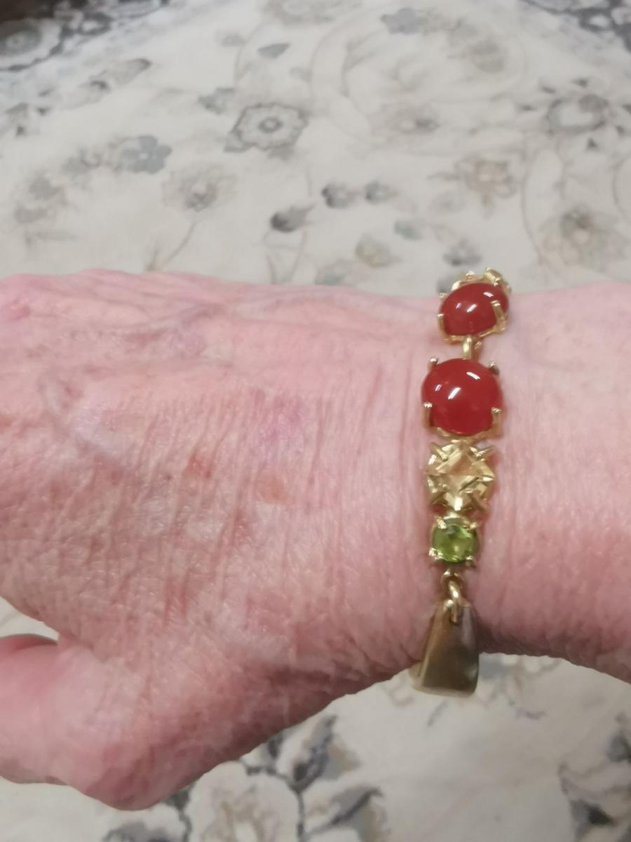 Bracciale in bronzo giallo polso 17/18 con corniole citrini e peridoti