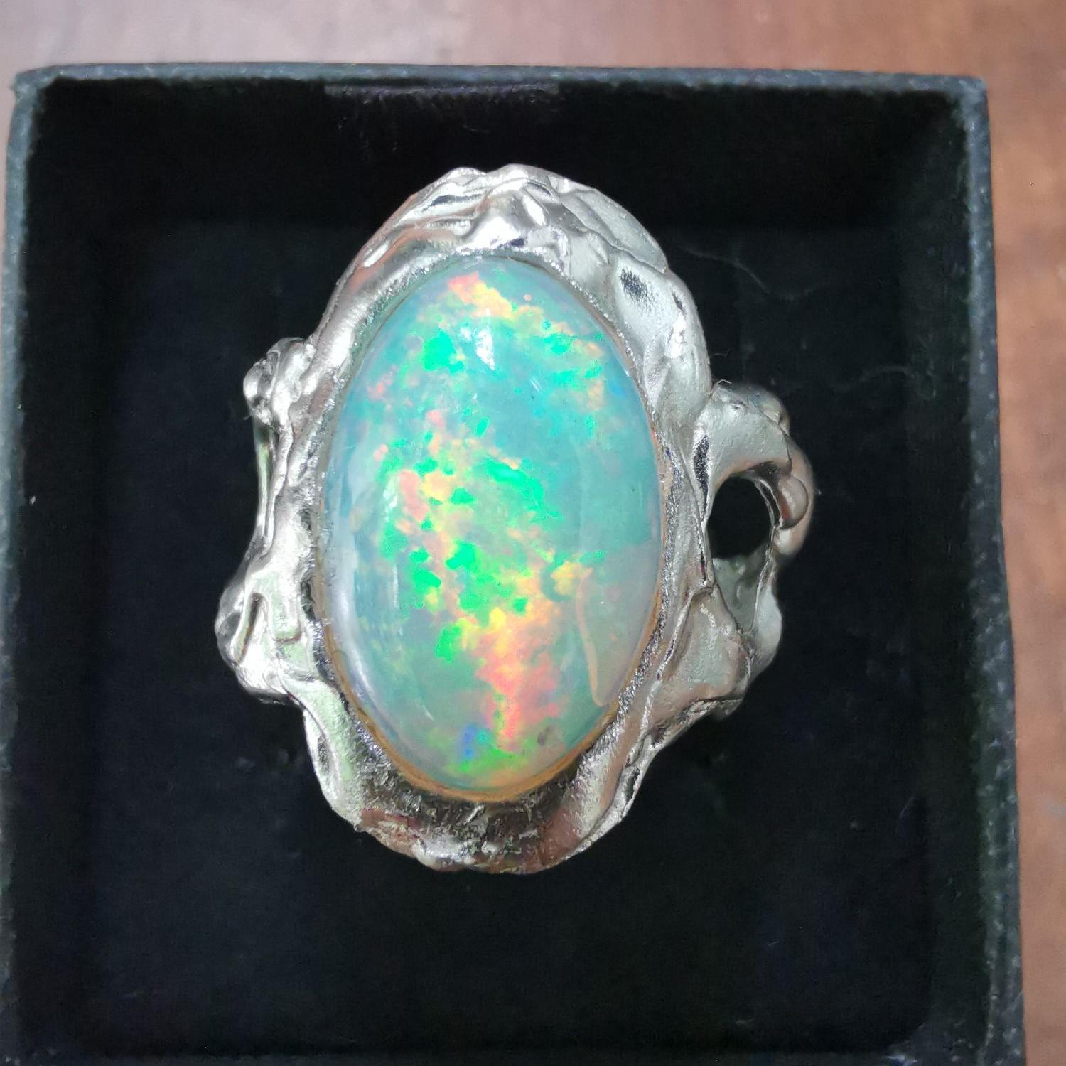 Anello in argento 925 regolabile con Opale etiope di ct 15,35