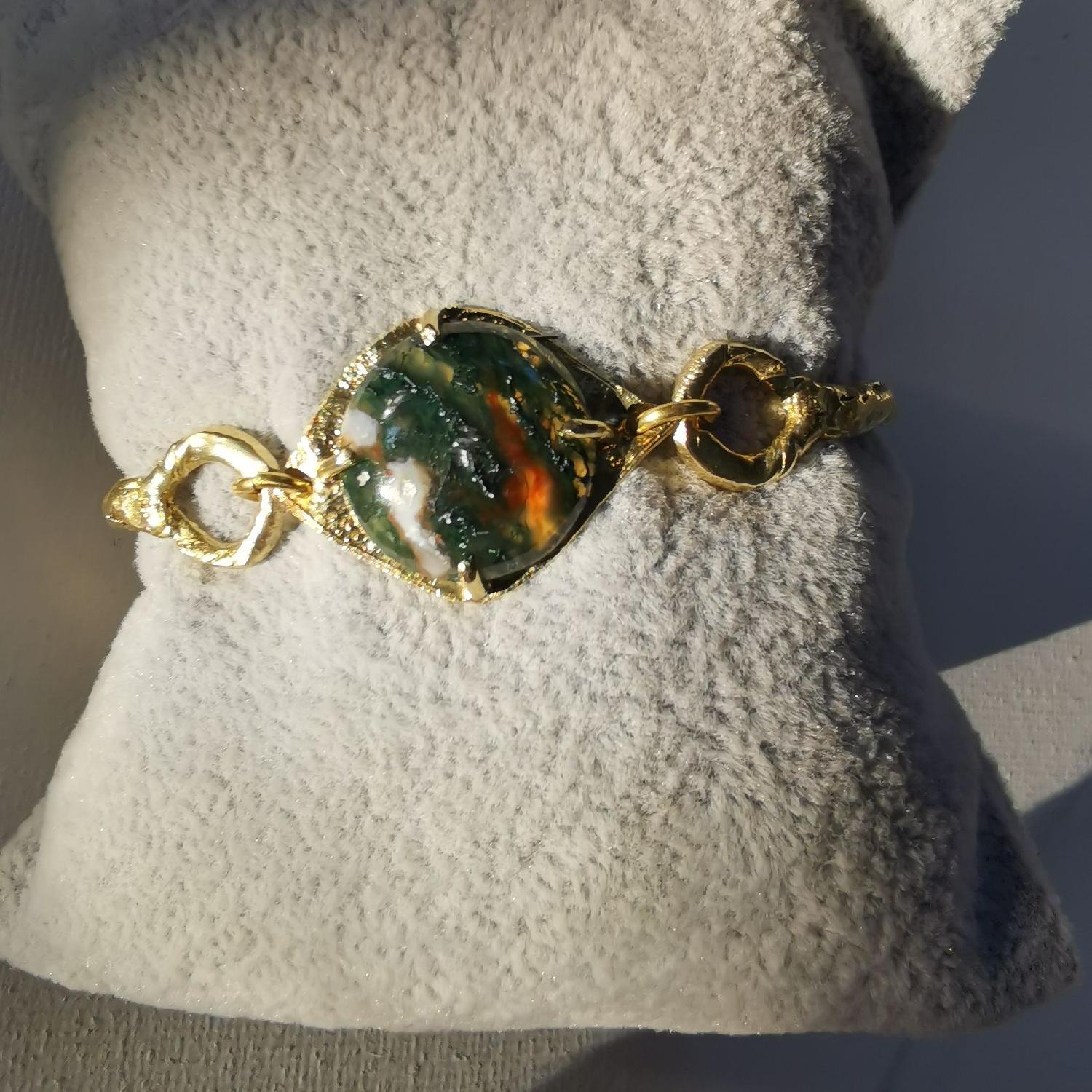 Bracciale in bronzo giallo con Agata muschiata polso regolabile