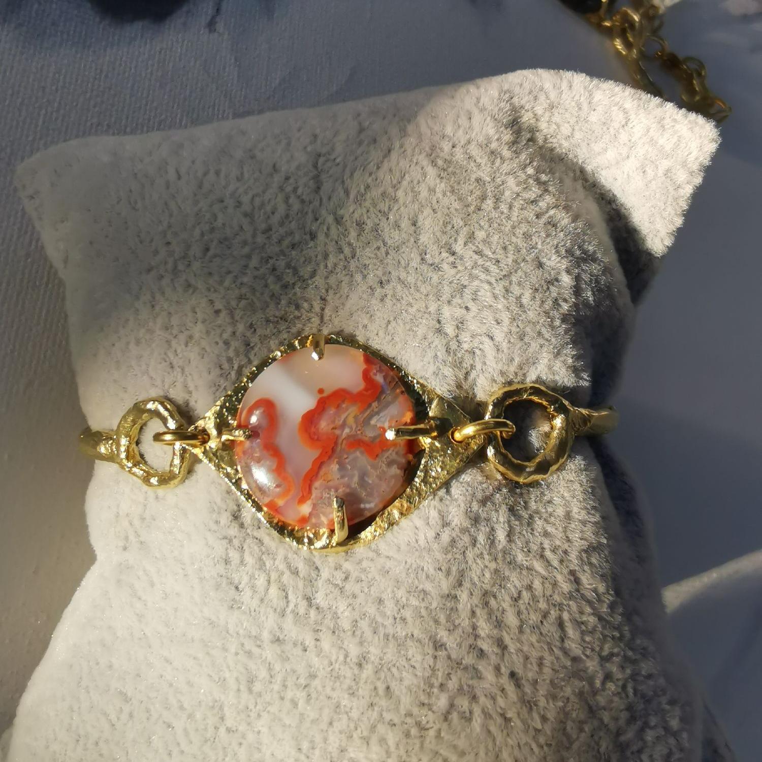 Bracciale in bronzo giallo con Agata rossa messicana regolabile