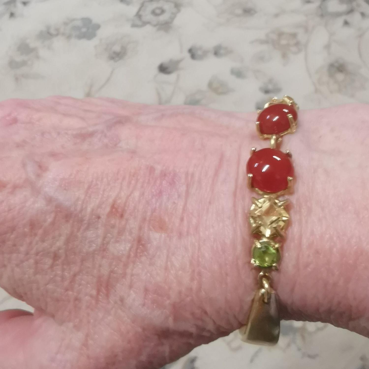 Bracciale in bronzo giallo polso 17/18 con corniole citrini e peridoti