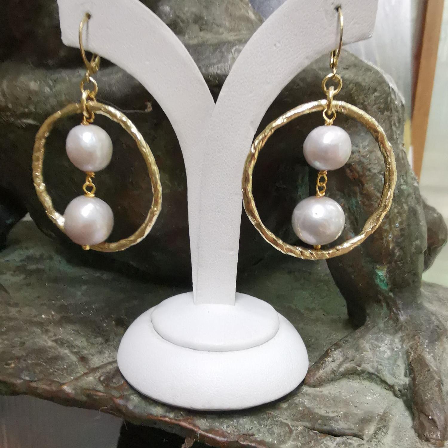 Orecchini in bronzo giallo con perle grigie cm 4