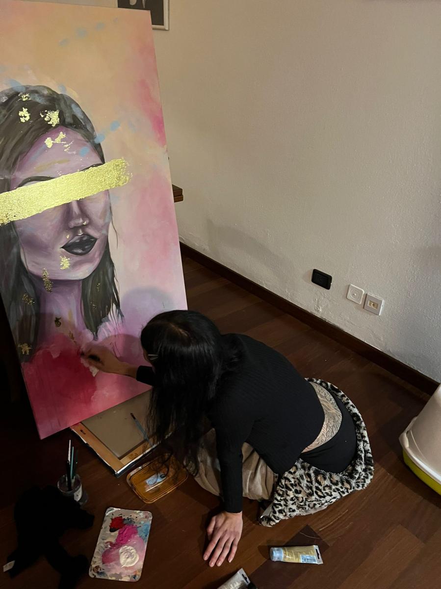 Anche se c'è molto altro, e mi sento in continua evoluzione, e cerco sempre nuovi materiali e tecniche da sperimentare, ad esempio i medium per creare effetti materici e tanto altro, nuove superfici sulle quali dipingere, anche tessuti, e nuovi approcci alla stesura dei colori e l'uso dei pennelli. Per quanto riguarda i disegni prediligo sempre il carboncino, mi ritrovo molto nel nero intenso e opaco che offre. Tendenzialmente in questo caso scelgo dei ritratti, ma creo anche dei volti di mia fantasia