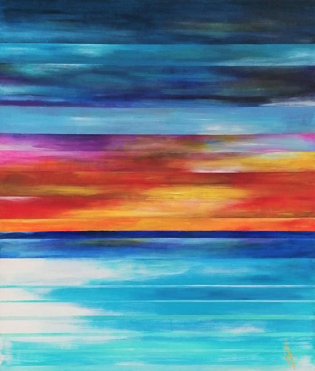 Il mare, il mare che rilassa, che guarisce, tutti i benefici dei colori dei paesaggi marittimi che ci fanno stare bene, dalla miscela della loro energia e della loro morbidezza, con la modernità dell'astrazione.