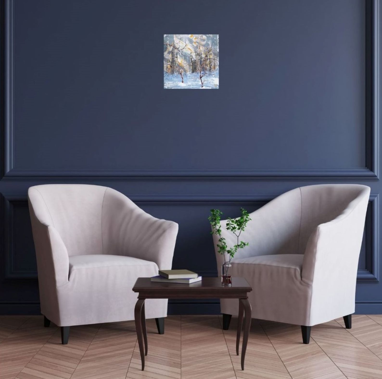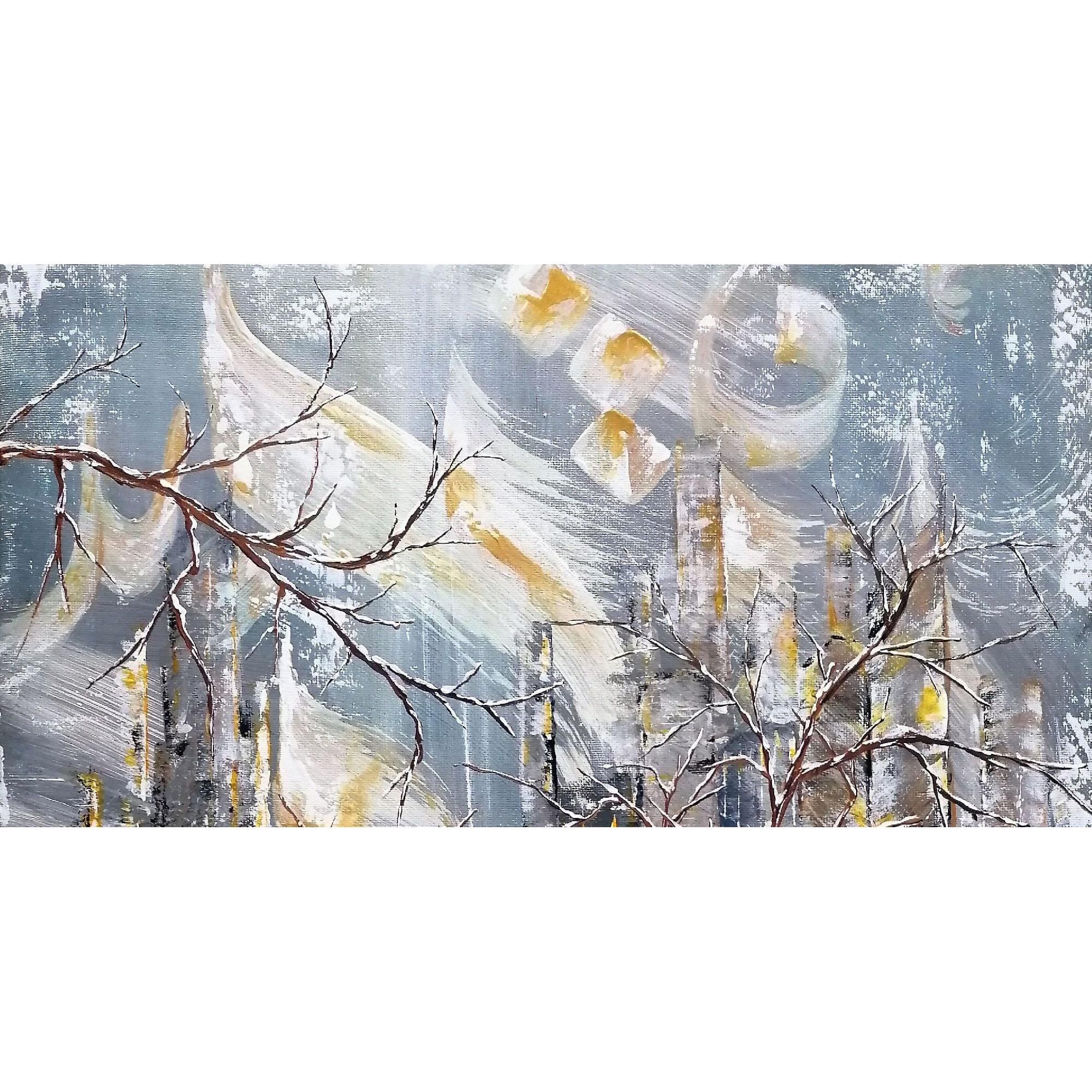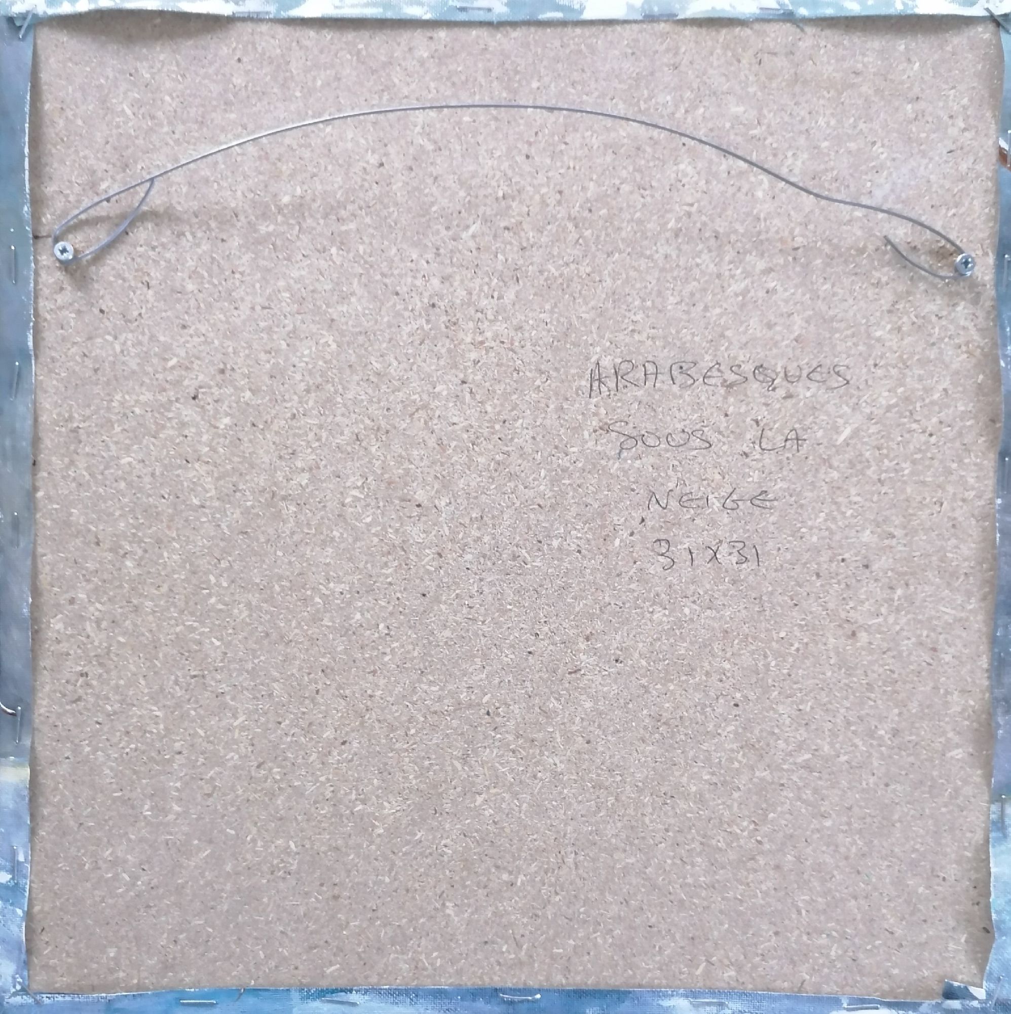 qui s'adaptent à toutes sortes de revêtements muraux. L' énergie qui se dégage est dûe aux mouvements créés par ces arabesques, représentation des éléments déchainés, d'inspiration calligraphique arabe. Acrylique sur toile tendue sur une plaque de bois de 31x31 cm, finition vernis.