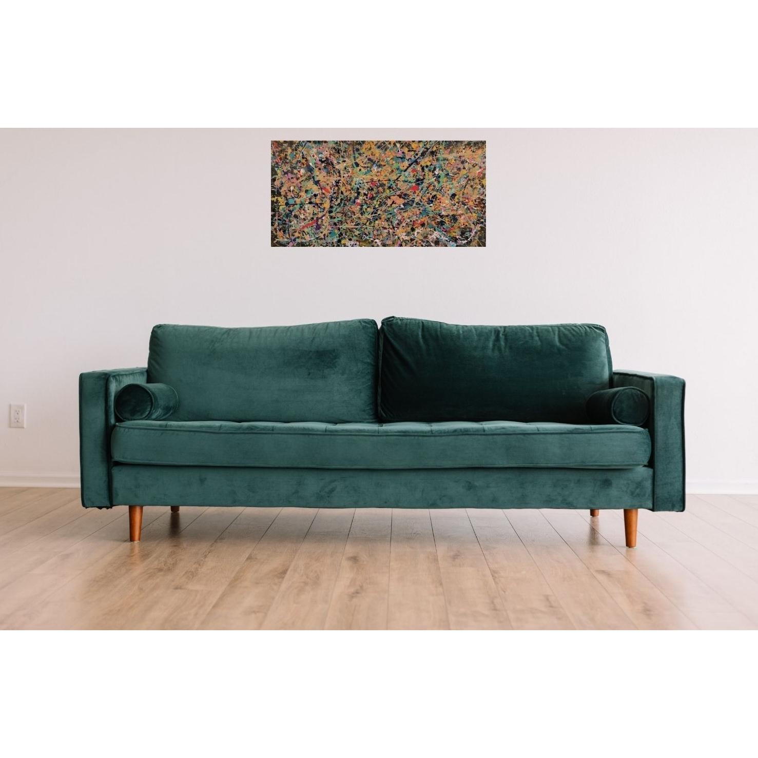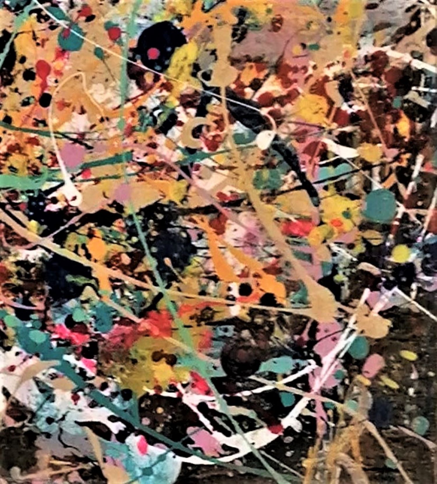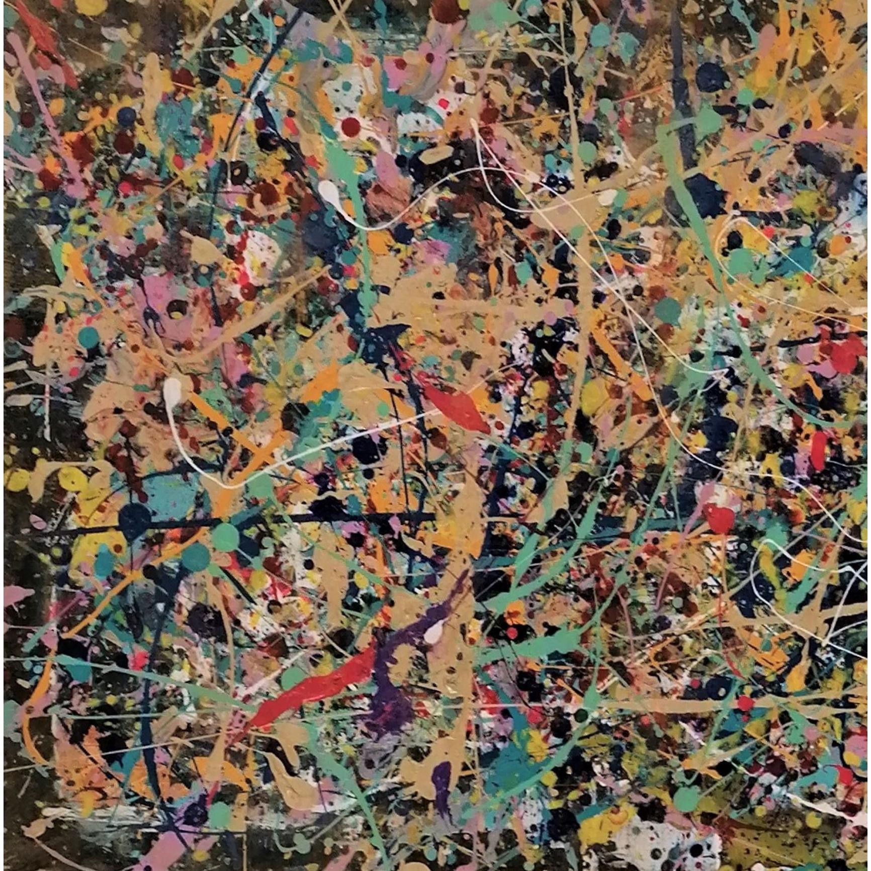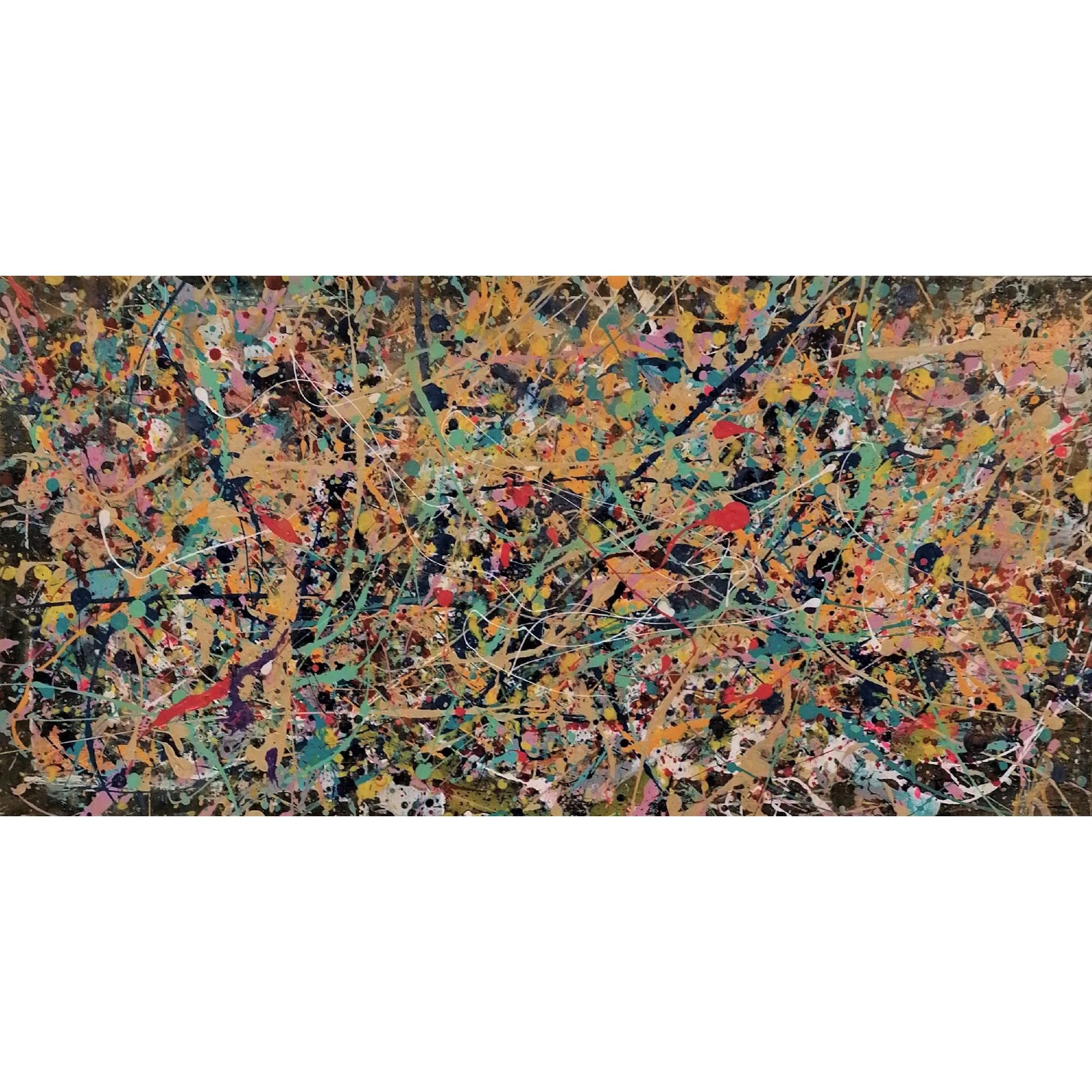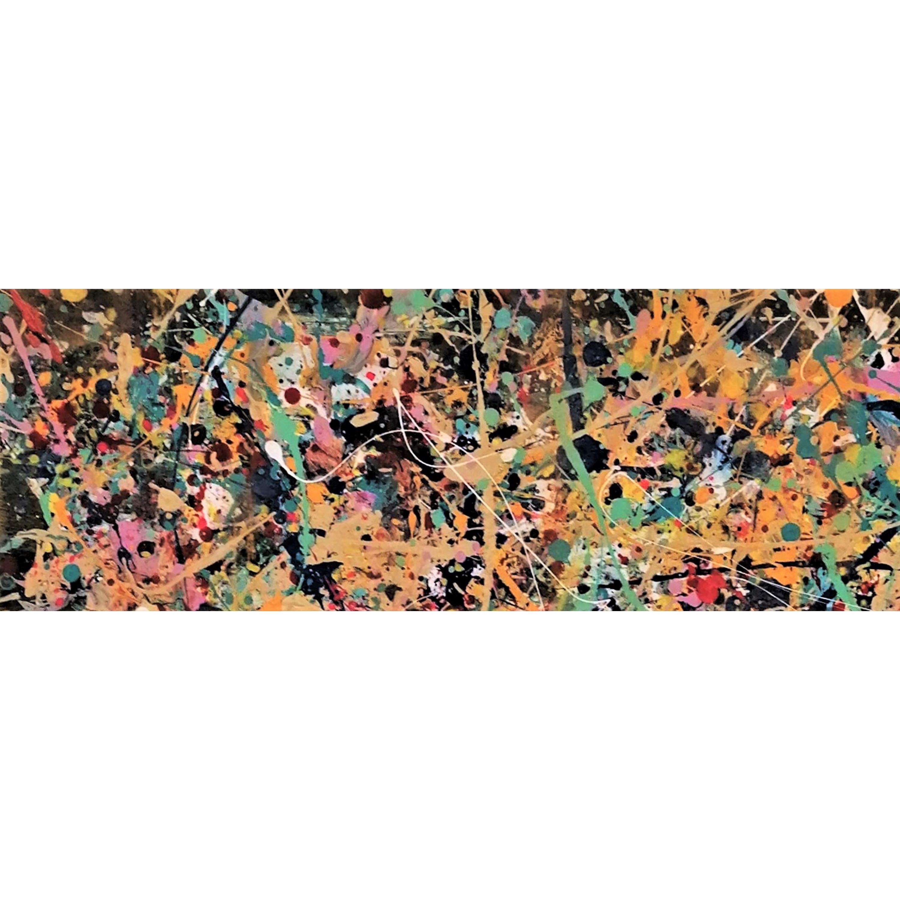 Pour cette oeuvre, étude autour de la technique de dripping et pouring, inspirée du grand et moderne Jackson Pollock. Oeuvre très gaie et colorée, dynamique, avec beaucoup de mouvement, tel que son nom l'évoque, et avec des couleurs contrastées et riches. Finition vernis.