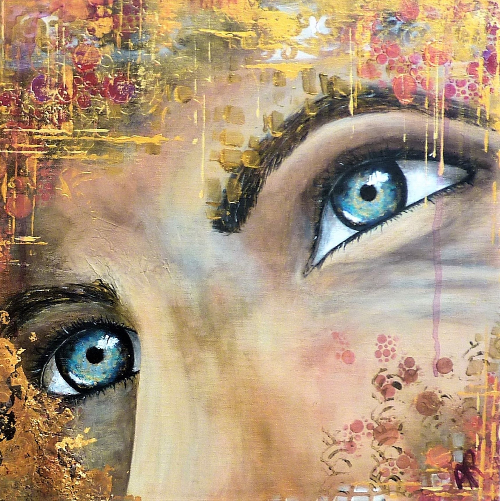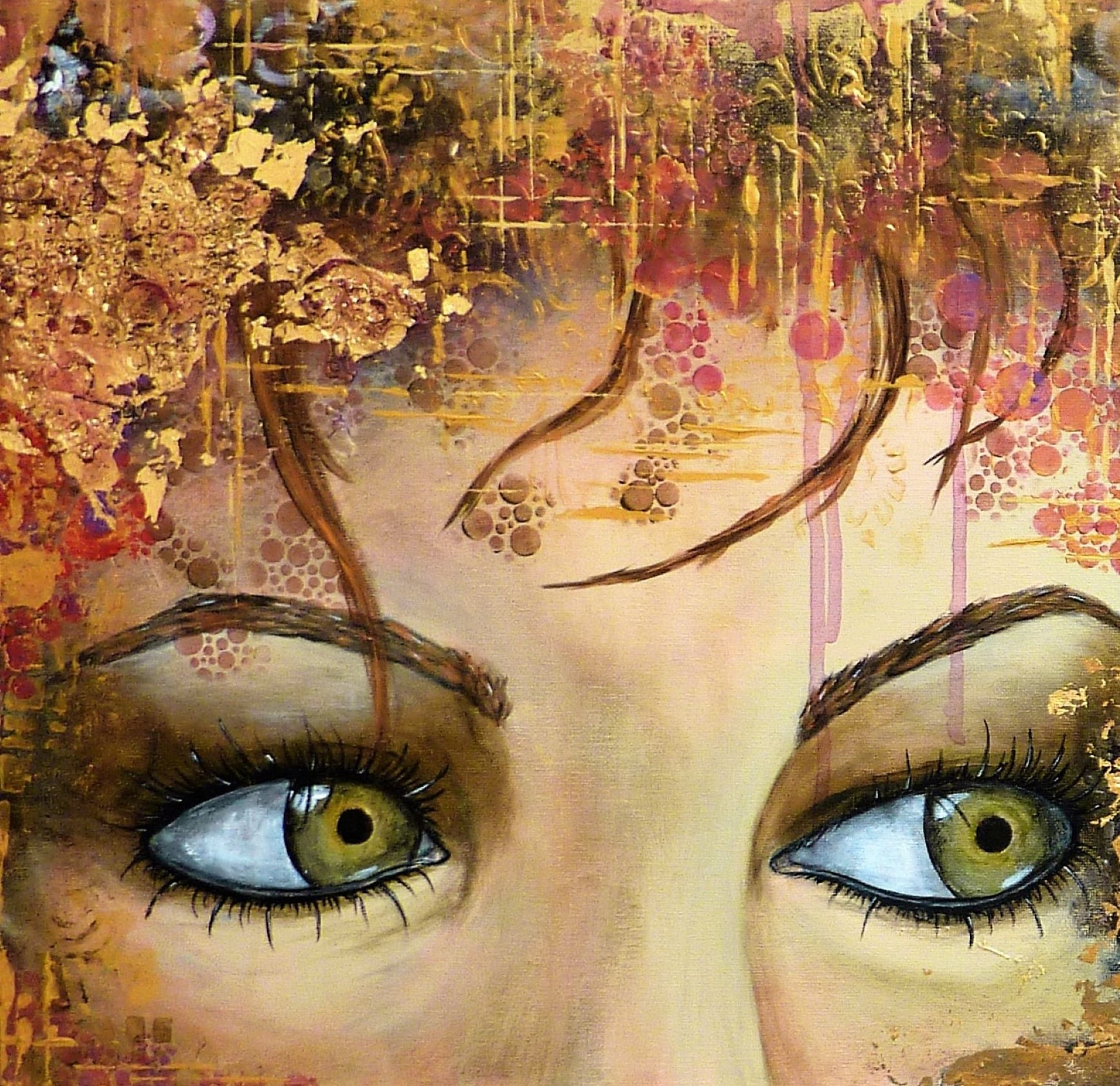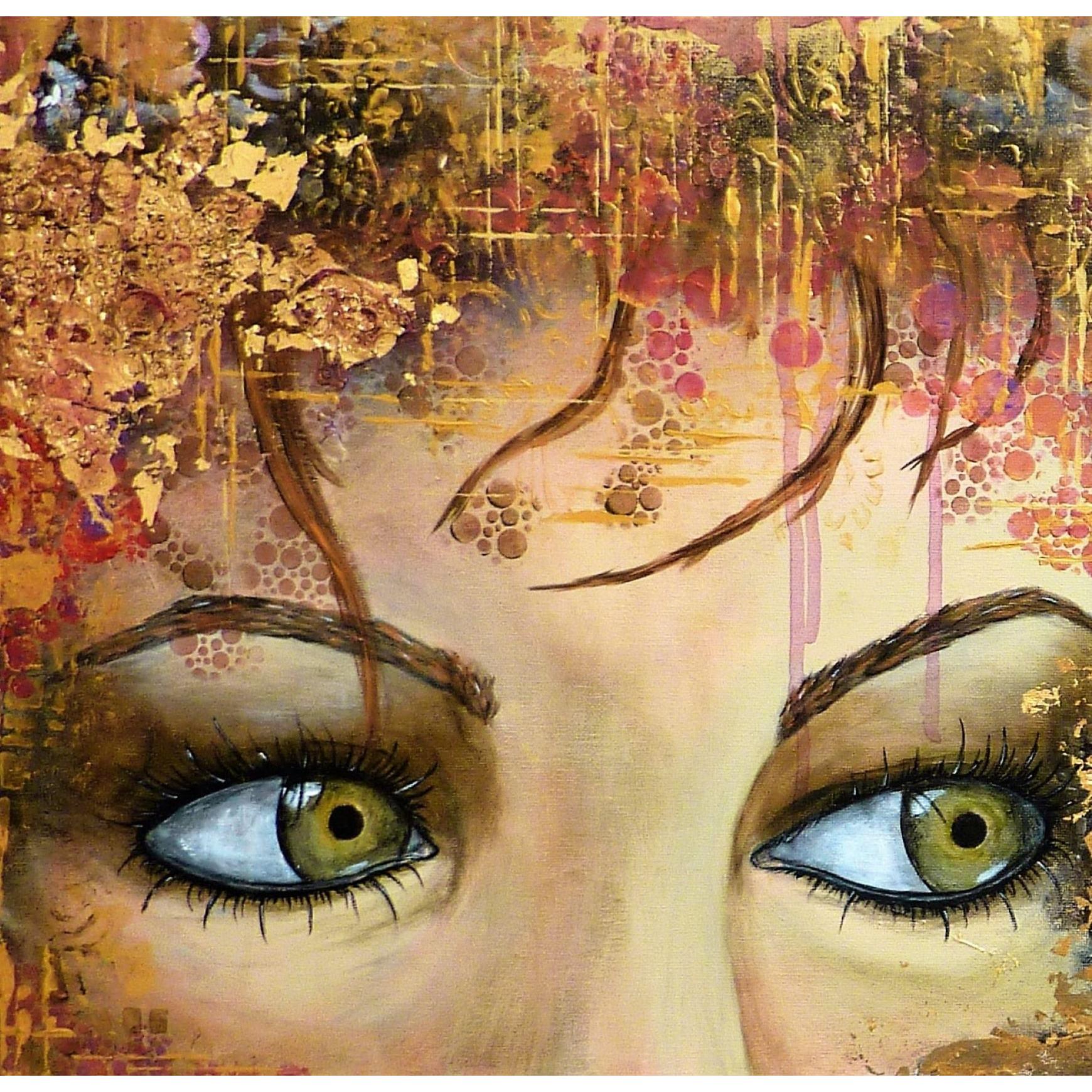 - Tecnica: acrylique et feuille d'or métallique