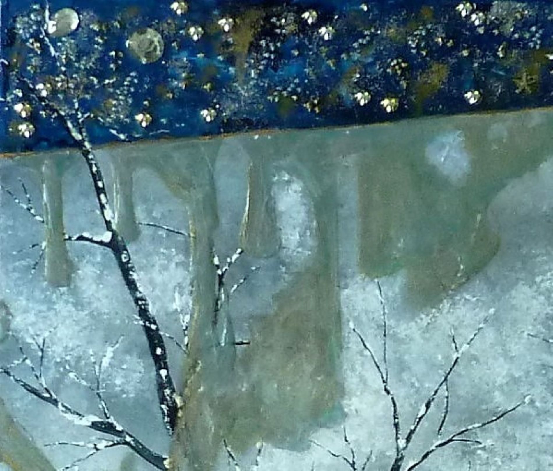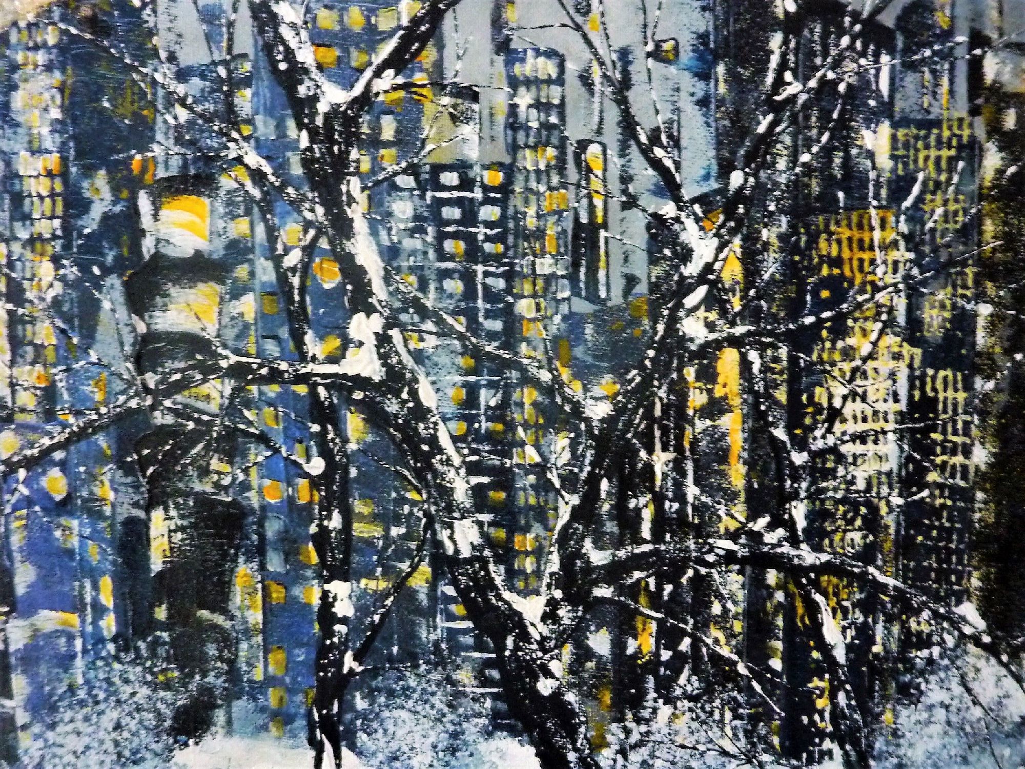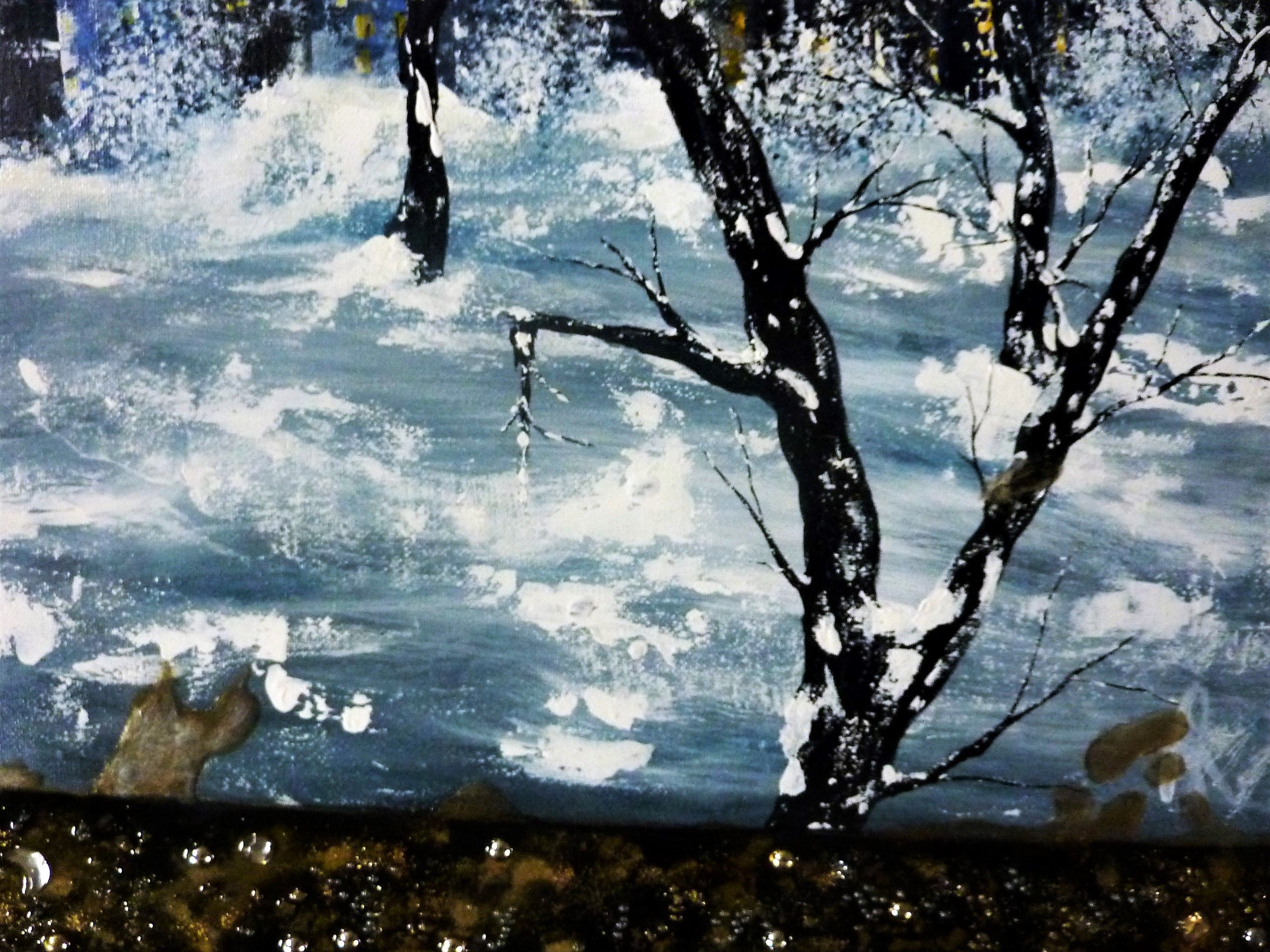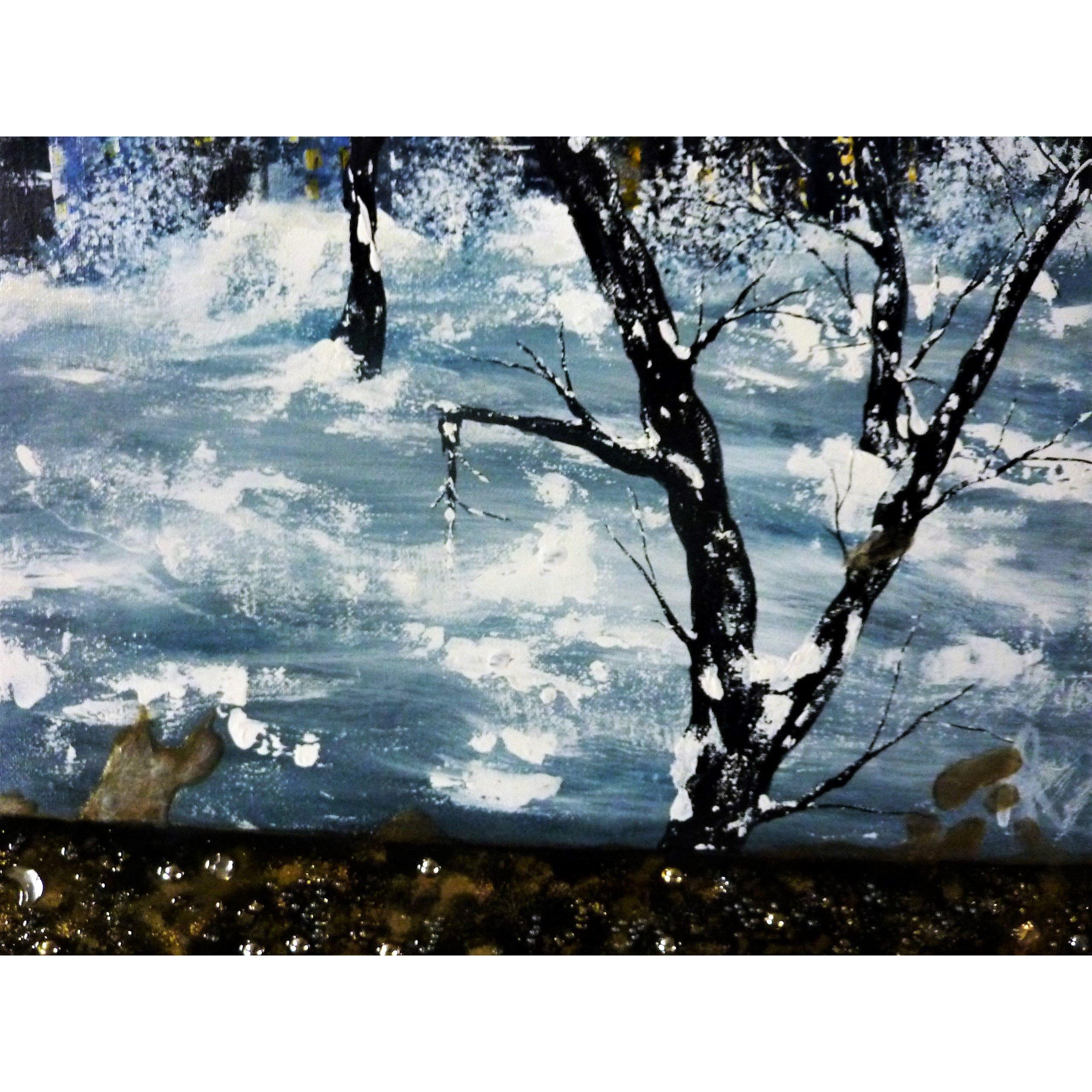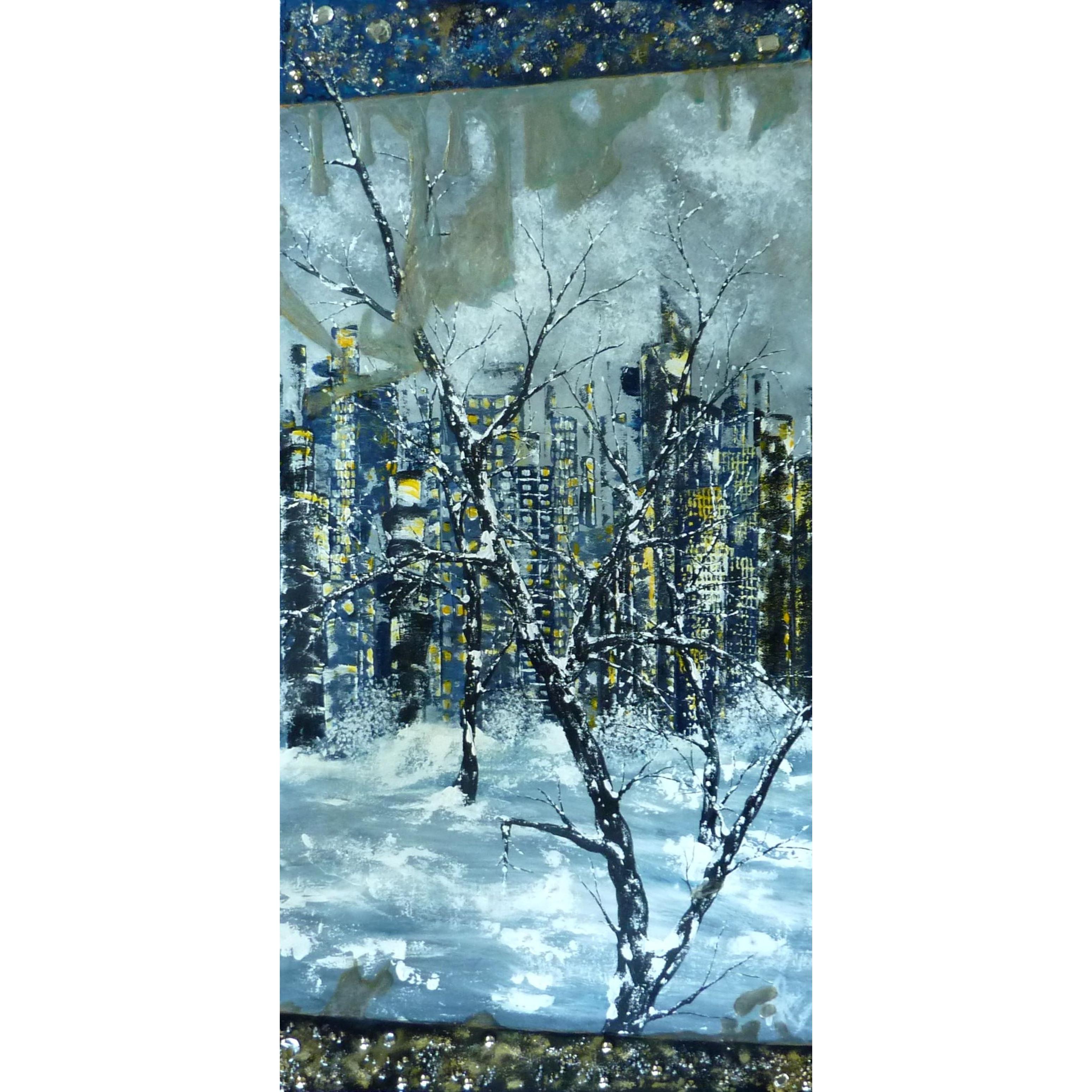 Paysage d'un temps tourmenté, c'est aussi ça la ville par temps gris. Elle est juste belle autrement, et nous donne envie de rentrer se mettre bien au chaud ! Ajouts de résine par dessus toutes sortes de perles, paillettes d'or véritable...Finition vernis.