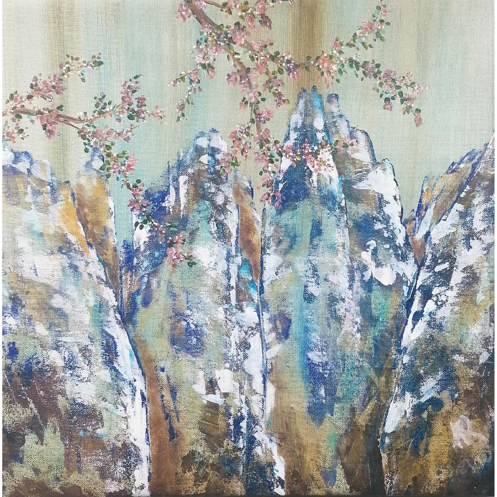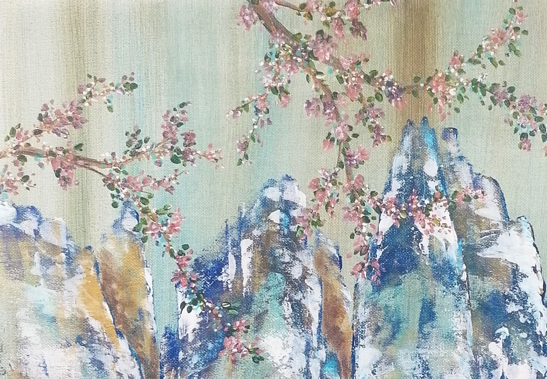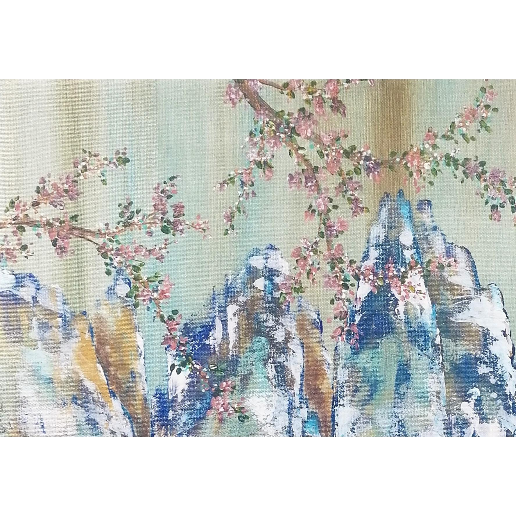 Acrylique sur toile tendue sur châssis, finition vernis, pour ce paysage d'inspiration asiatique.