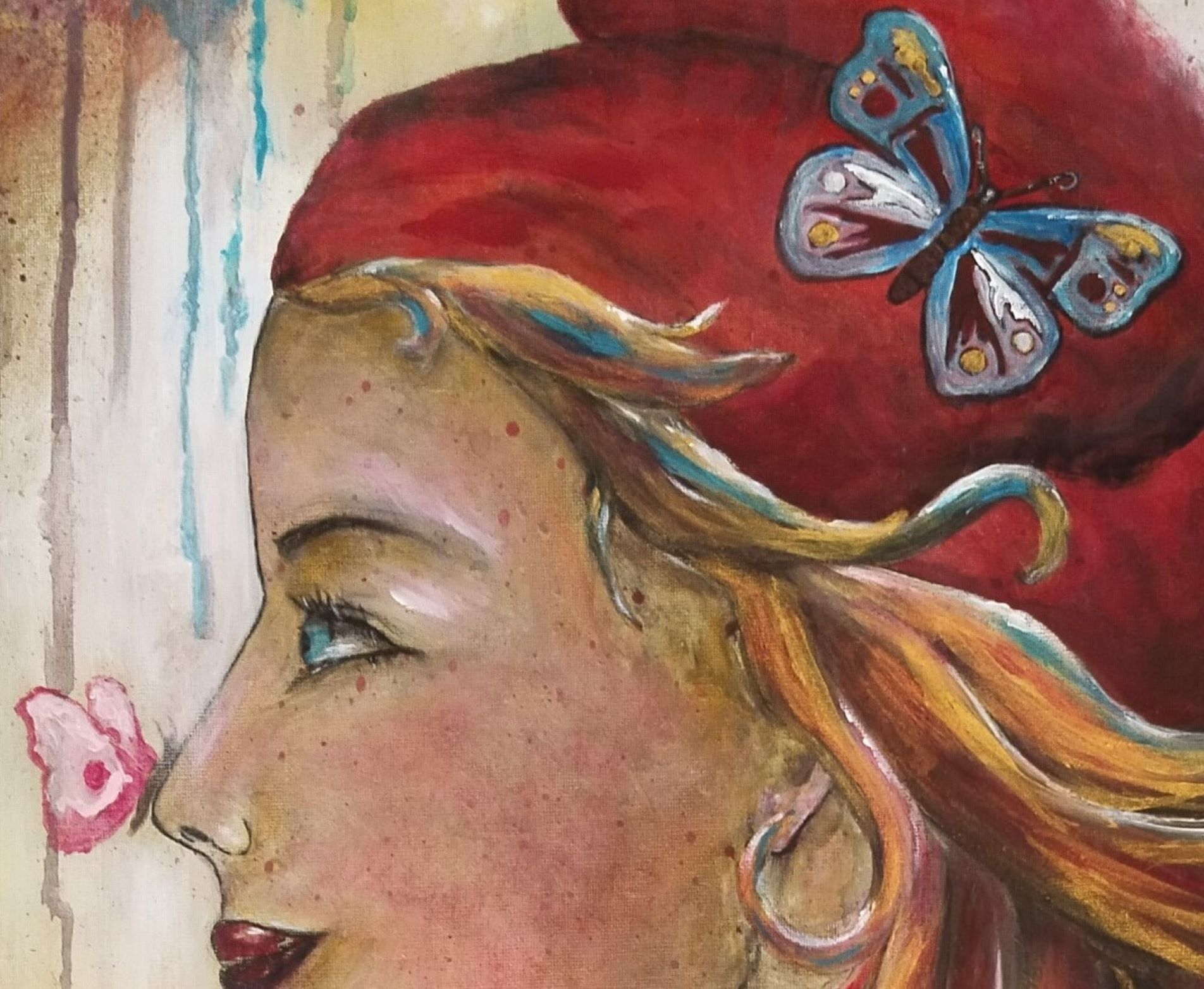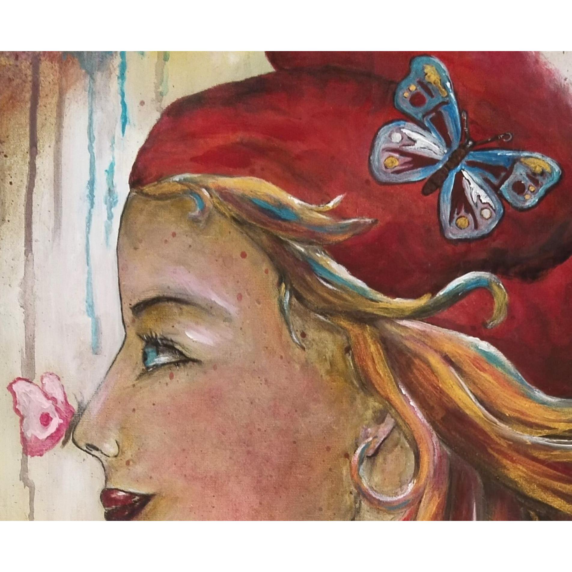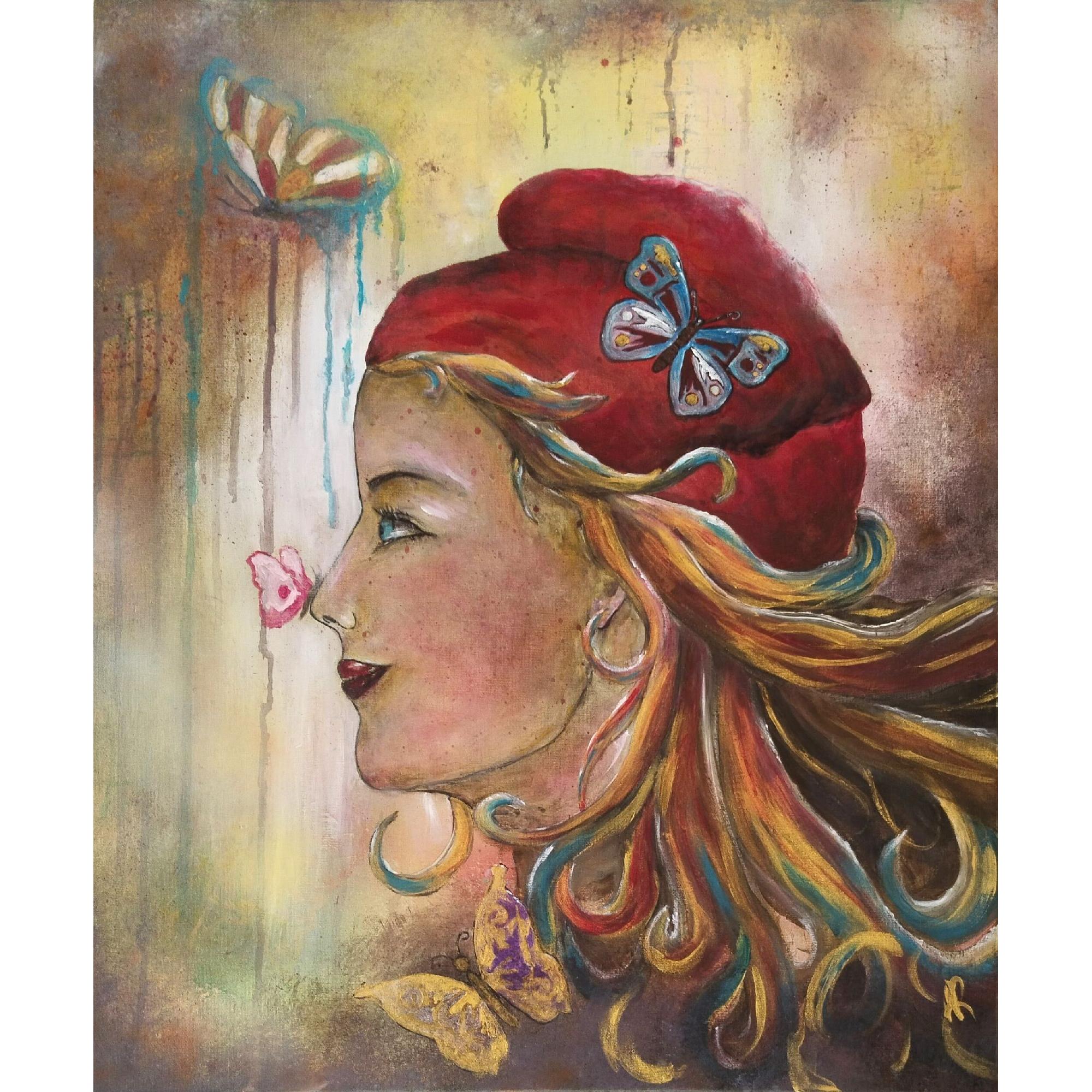 Je suis une célébrité à ma façon, je suis Marianne, le symbole de la République française, à la fois vieille et sans âge. Malgré les troubles et les angoisses qui traversent la France, je choisis de me montrer légère et insouciante, de représenter la jeunesse, de me montrer libre comme je devrais l'être, même si de nombreuses évocations peuvent ici être interprétées, selon les sentiments et les visions de chacun. Acrylique et aérosol sur châssis recouvert 55x46 cm, finition vernis.