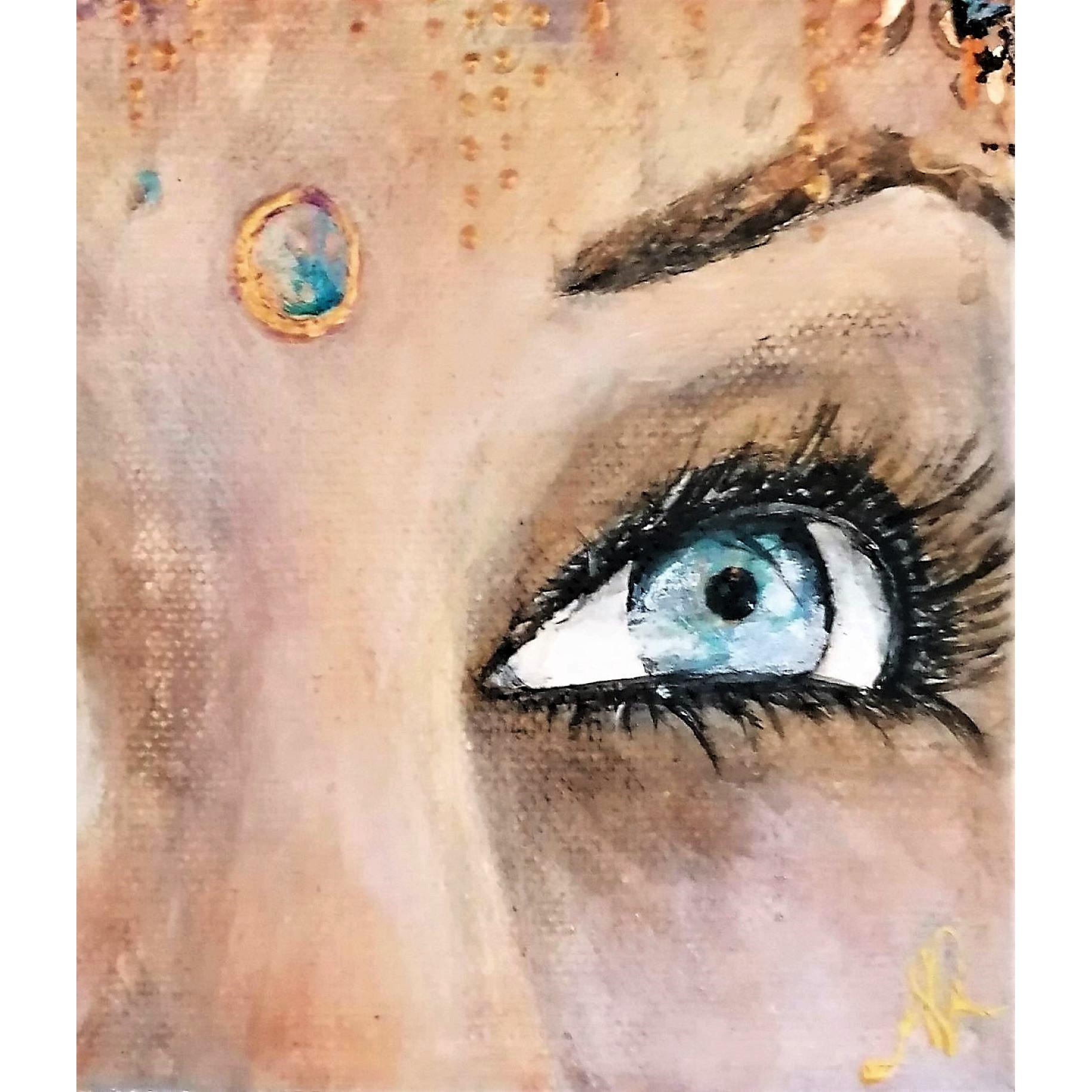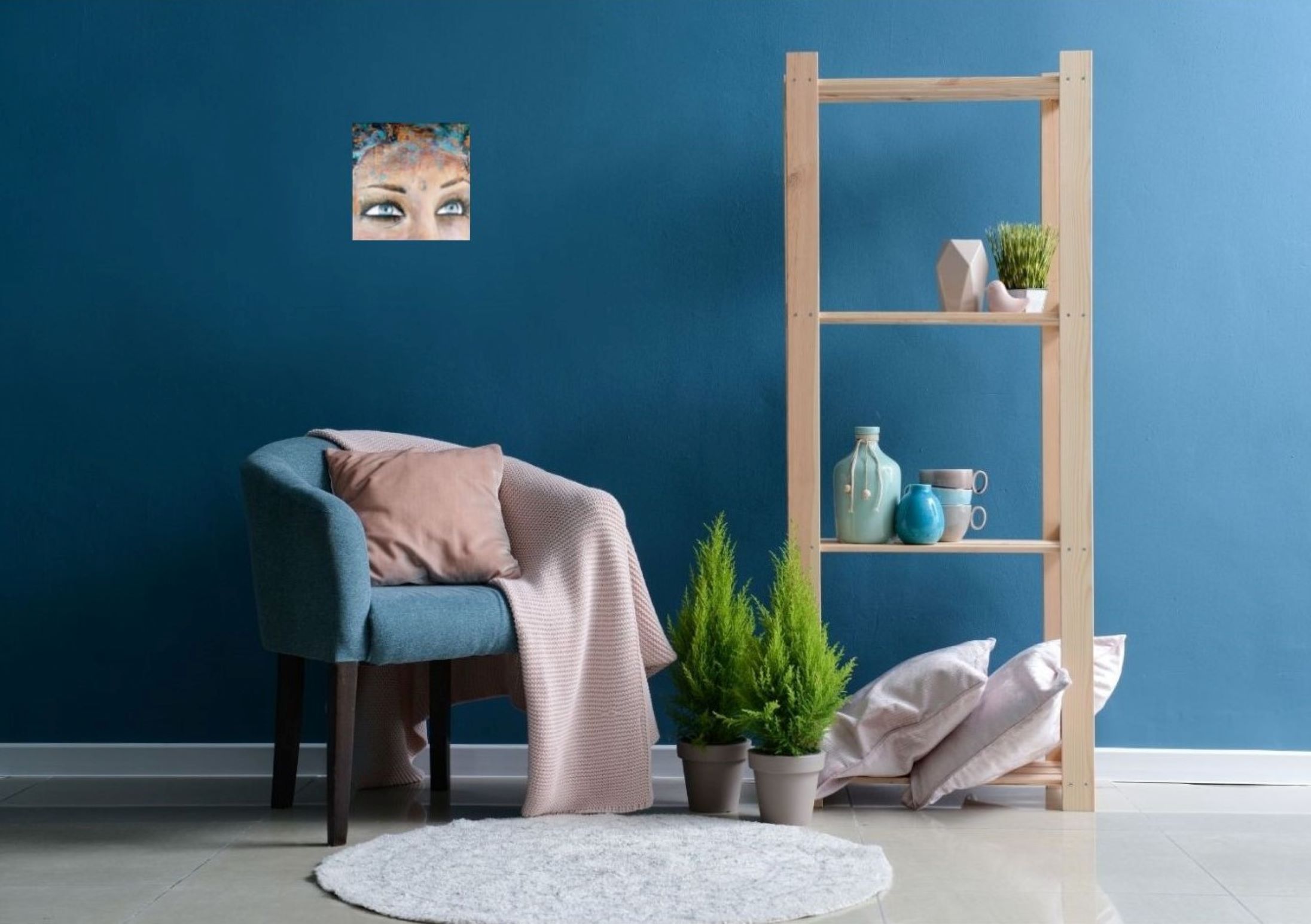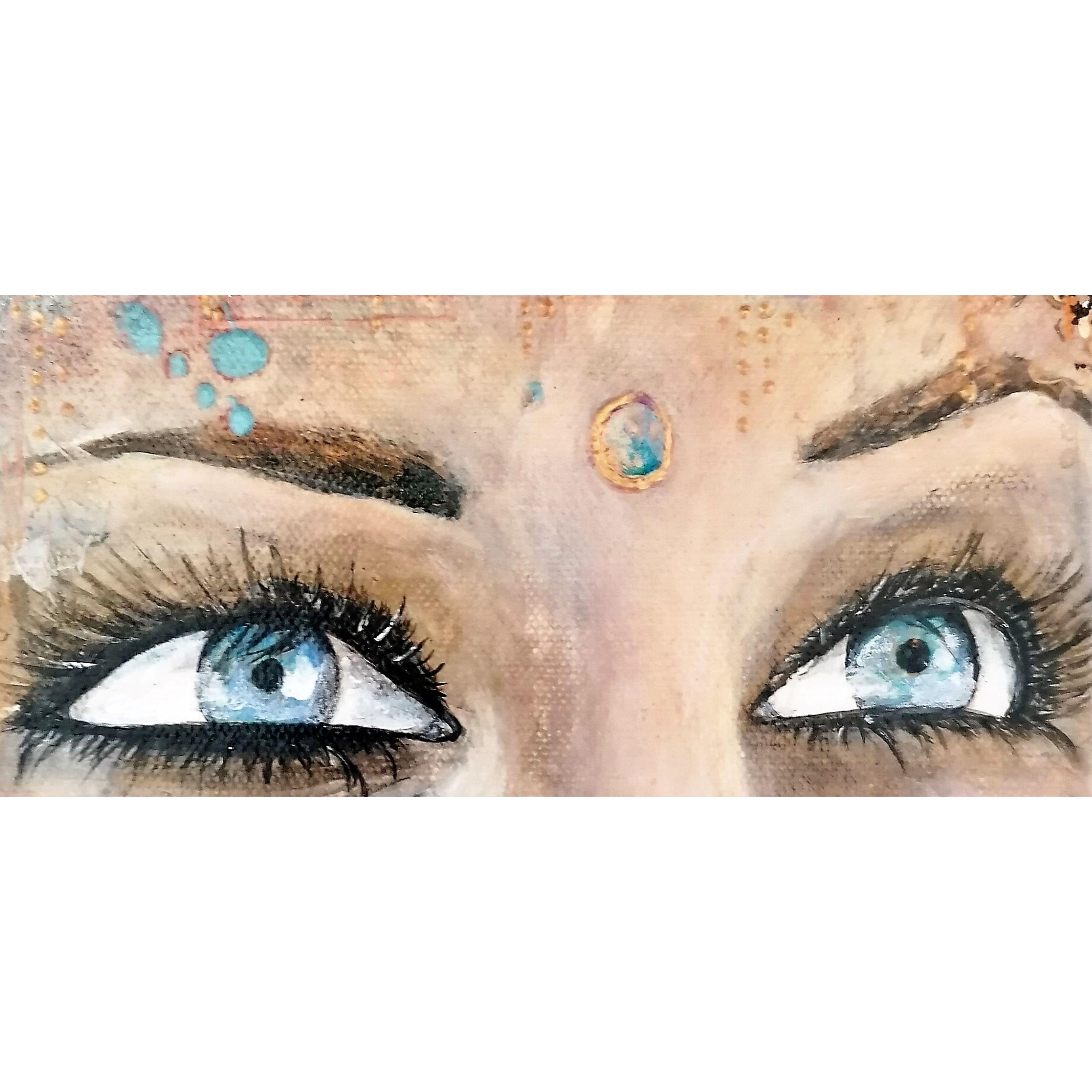 Cette toute petite toile de 20x20 cm, réalisée sur châssis en technique mixte à base acrylique, capture un joli sourire aux nuances bleutées. L’expression, à la fois douce et mystérieuse, évoque subtilement une inspiration indienne, mêlant tradition et modernité. L’œuvre joue sur les contrastes de teintes et de textures pour créer une présence intime et captivante. Finition vernis pour protéger la surface et sublimer les reflets, idéale pour une décoration murale raffinée.