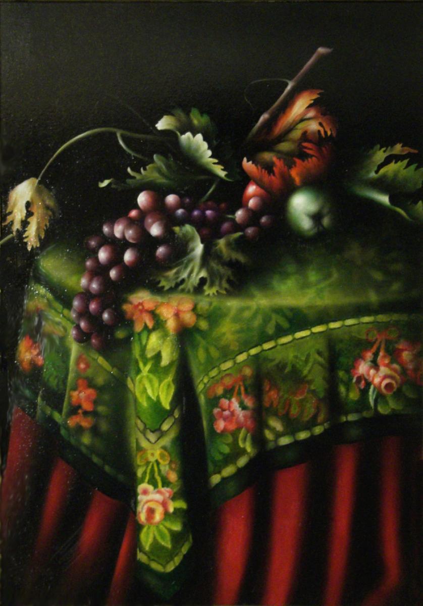 GA137620 - Natura morta di argenti con cuscino rosso -