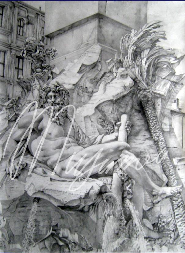 Allegoria dei quattro importanti e conosciuti fiumi al tempo del Bernini. Il fiume Gange. L'opera scultorea, si trova a Piazza Navona a Roma.